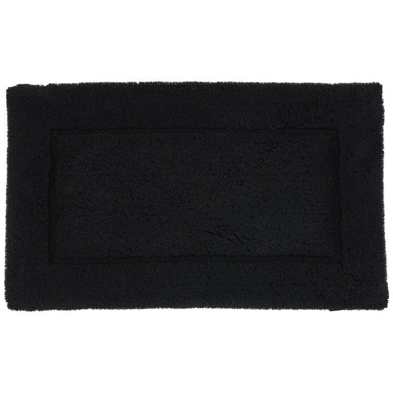 The Habidecor Must Rug in Black 990 is a luxurious and highly durable, 100% Egyptian Giza cotton bath rug made in Portugal. Featuring an approximate 1-inch thick, plush pile, it is renowned for its extreme softness, superior absorbency, and resistance to pilling. Available in 60 colors, it features a classic inset border and is machine washable. Rugs also available with an optional light, non-slip spray backing at no extra cost to prevent sliding on slick floors (allow 3-4 weeks). Pre-shrunk and piece dyed after sewing to ensure the rug, label and trim are a perfect color match.