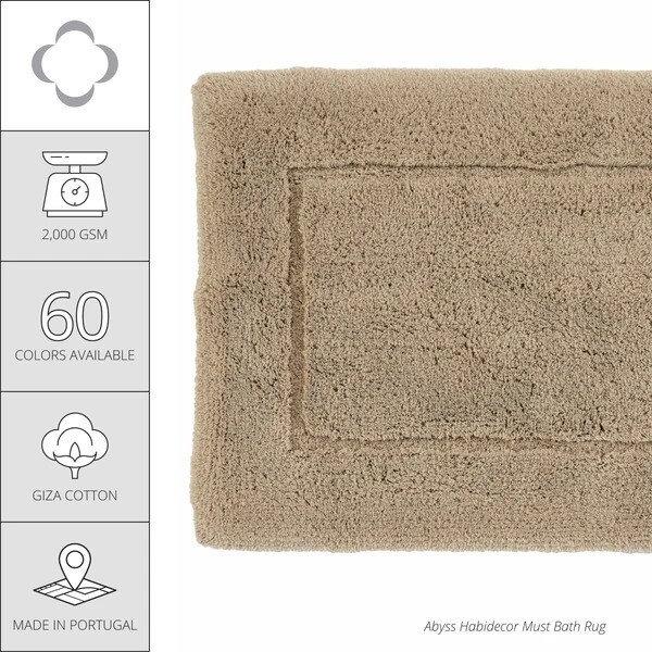 The Habidecor Must Rug in Lupin 430 is a luxurious and highly durable, 100% Egyptian Giza cotton bath rug made in Portugal. Featuring an approximate 1-inch thick, plush pile, it is renowned for its extreme softness, superior absorbency, and resistance to pilling. Available in 60 colors, it features a classic inset border and is machine washable. Rugs also available with an optional light, non-slip spray backing at no extra cost to prevent sliding on slick floors (allow 3-4 weeks). Pre-shrunk and piece dyed after sewing to ensure the rug, label and trim are a perfect color match.