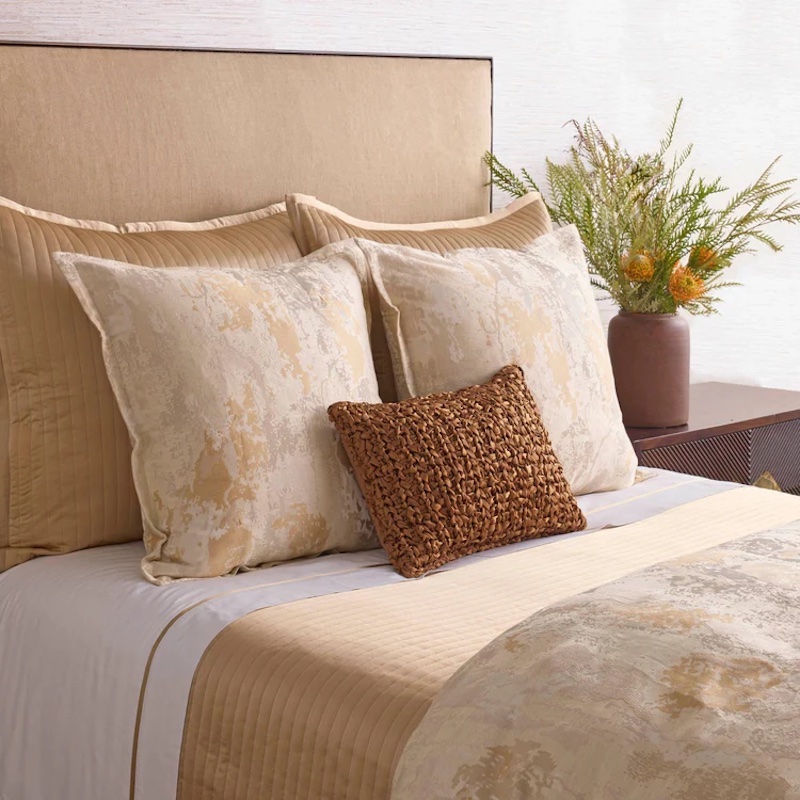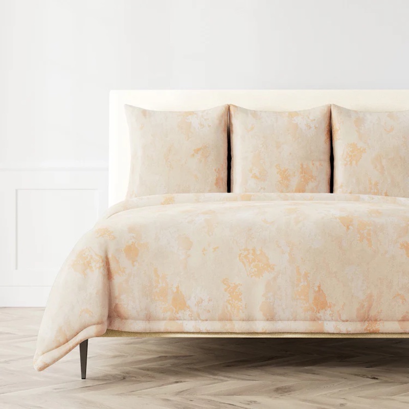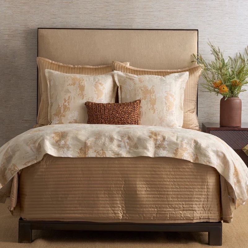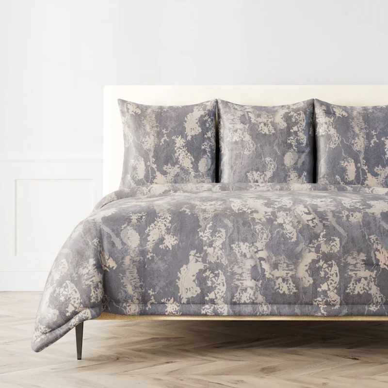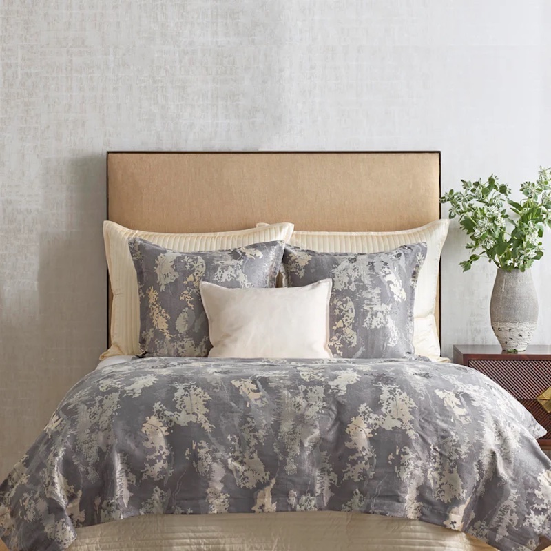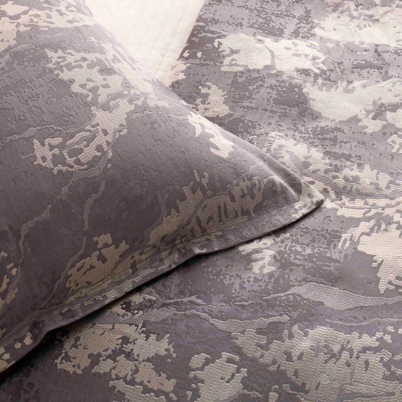 Available in Grey & Sand. Shams have 1" topstitched flange. Decorative pillows have a knife edge finish. Duvet cover cover have a topstitched flange, zipper closure, and corner ties. 100% polyester. Machine washable.