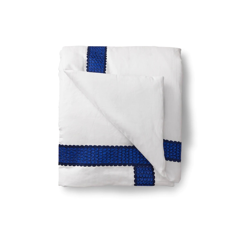 Ann Gish's Inzik is part of The Met x Ann Gish collection. Inzik is inspired by Egyptian and Iranian tiles, Inzikâs elegant floral motif in a classic white and indigo color palette translates beautifully to textile for the Met x Ann Gish collaboration. 60% linen 40% cotton. Padded with poly fiberfill. Reverses to solid linen/cotton. Pillow is 60% linen 40% cotton and available as a 24x24" pillow reversing to solid linen/cotton. Feather/down fill included, hidden zipper closure.