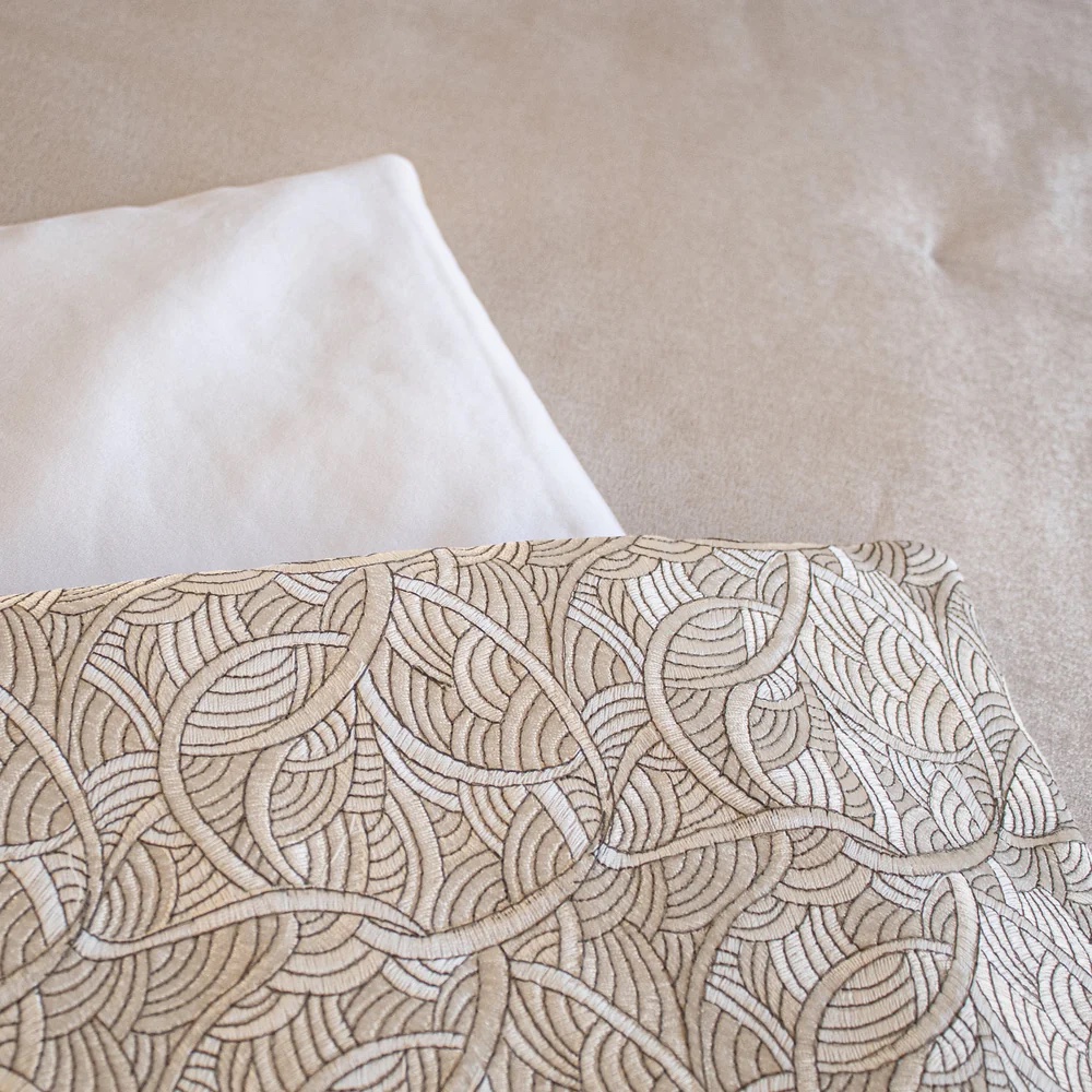 It is gorgeous undulating pattern completely covers the ground fabric. Lightly padded, reverses to silk Charmeuse.