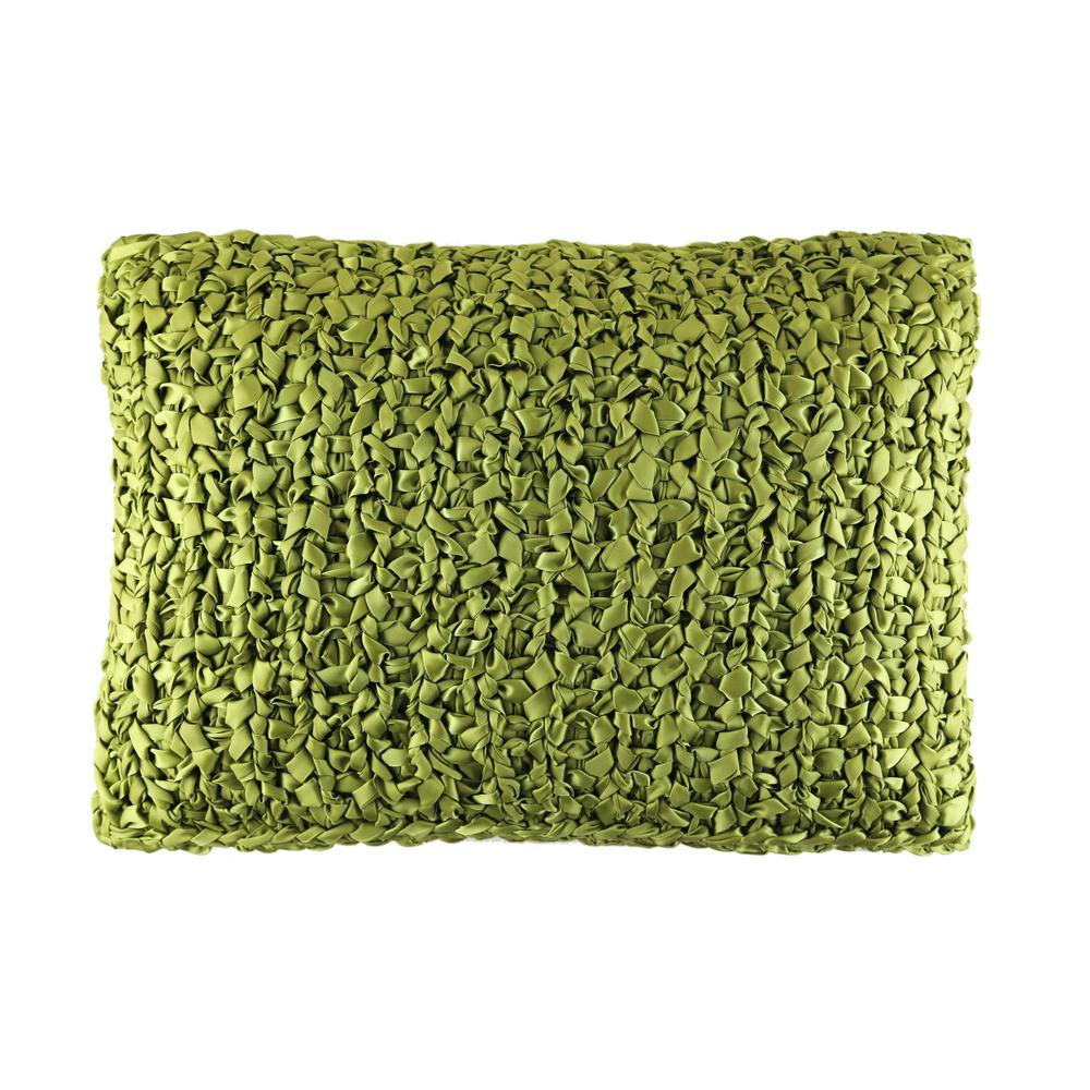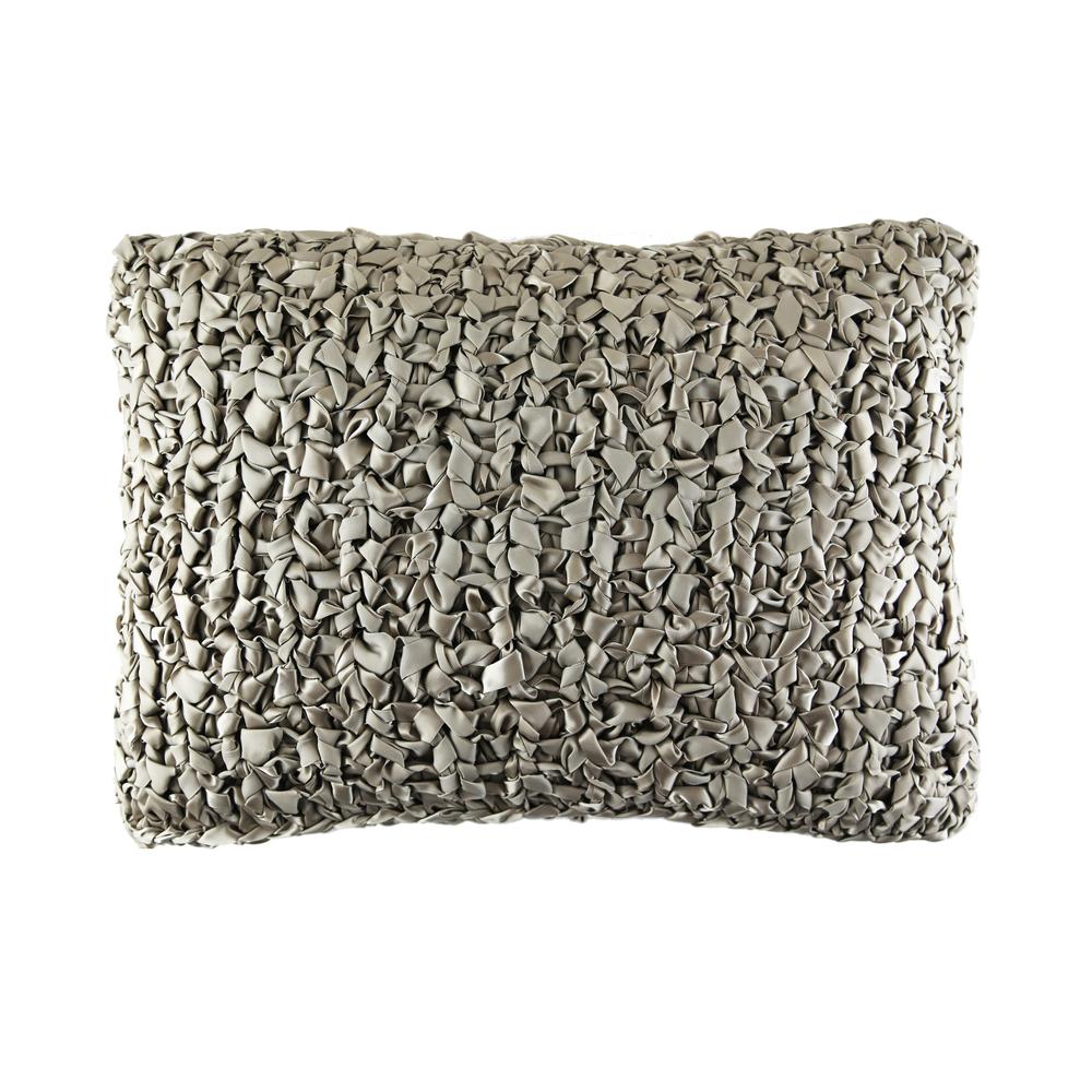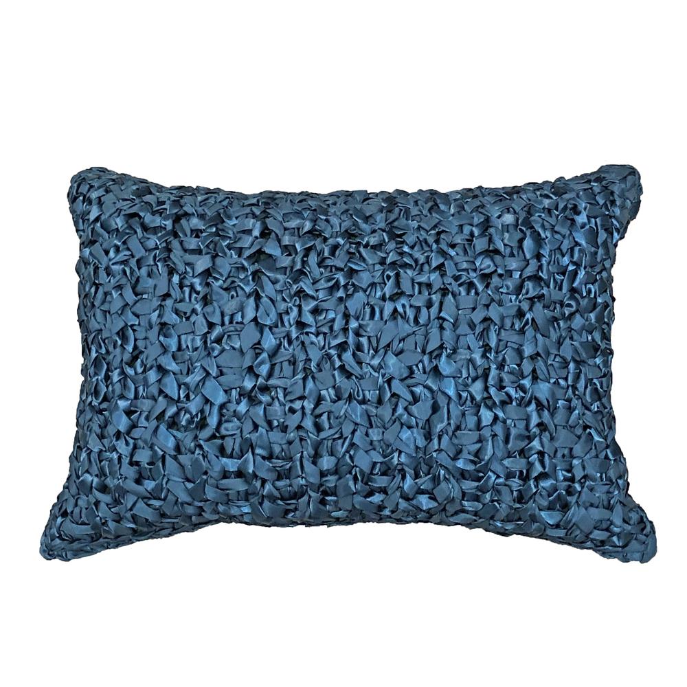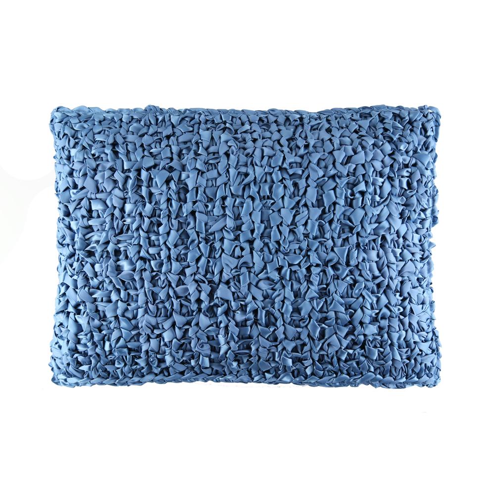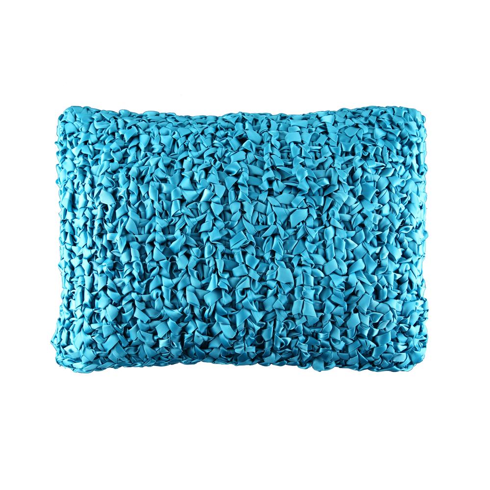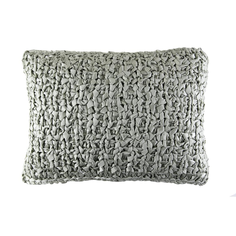 Ann Gish's Ribbon Hand Knit pillows and foot quilt are fun and exciting. They are hand-knitted from amazing chic ribbon. Then backed with coordinating cotton sateen. Pillows have a zipper closure and include 95/5 feather and down insert. Throw measures 96 x 24" but may stretch as it is a knit. Several colors available. Add one to add a pop of color or several mixed and matched. 100% Polyester with cotton reverse.