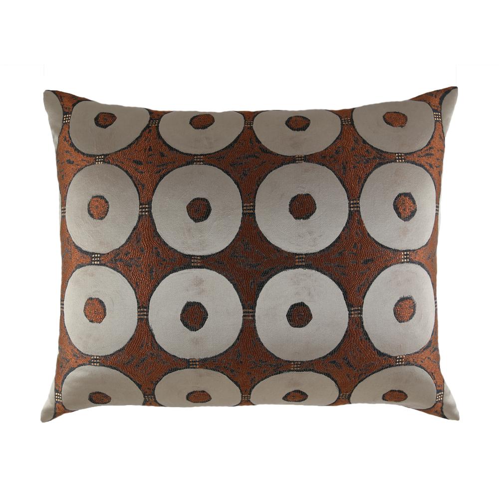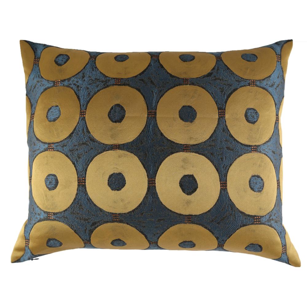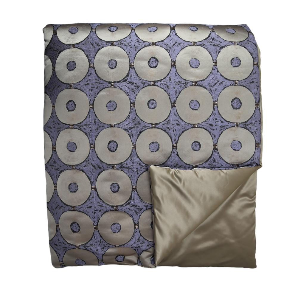 Ann Gish's Ring decorative pillows and foot quilt are Ultra-modern and daring make a beautiful splash this bedding decor. The woven texture of Ring evokes many styles and places. The throw is padded and tacked with graham ties, and reverses to solid poly satin. The pillows have a zipper closure and include a 95/5 feather & down insert.