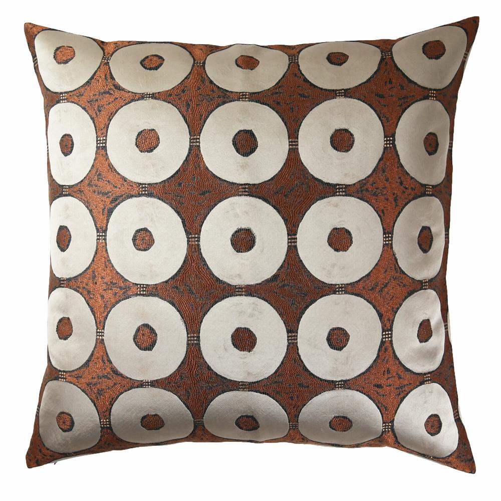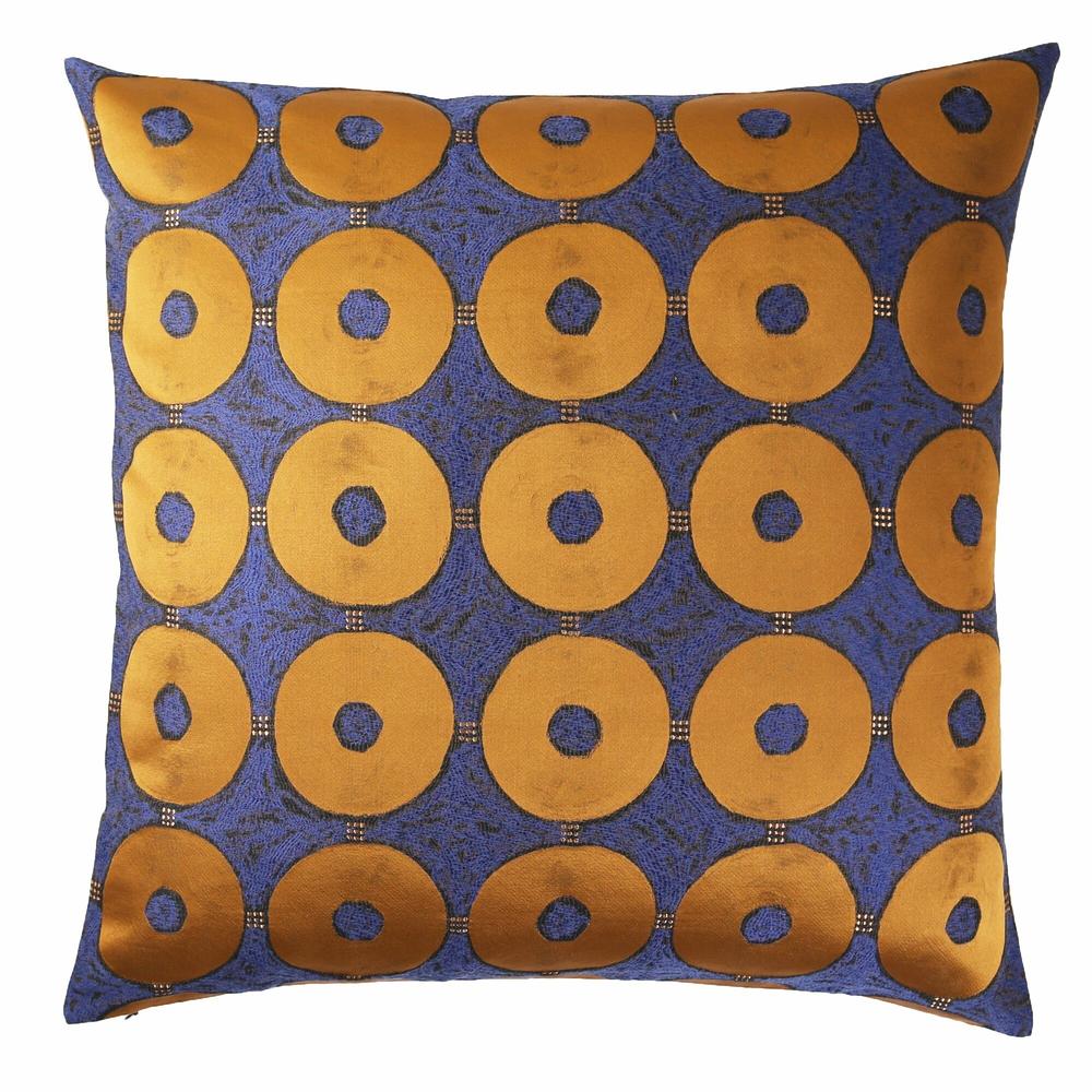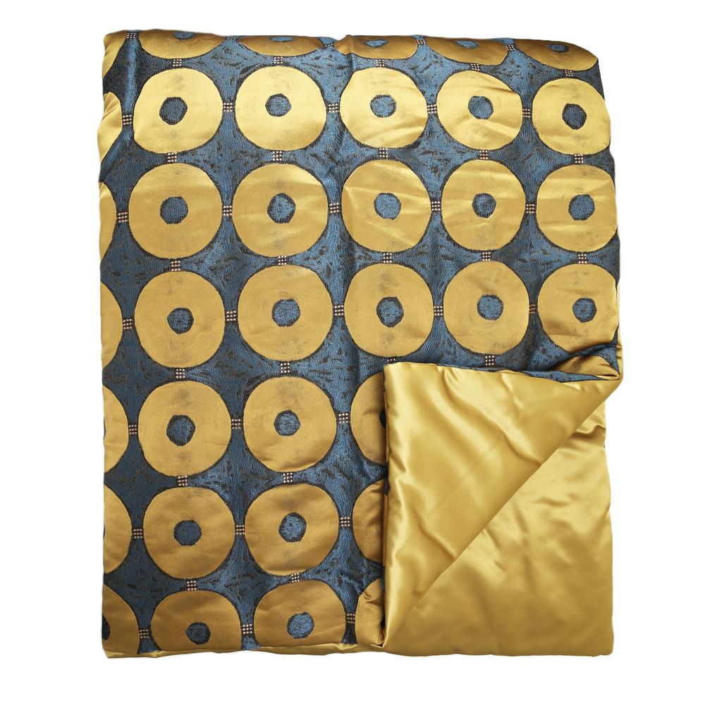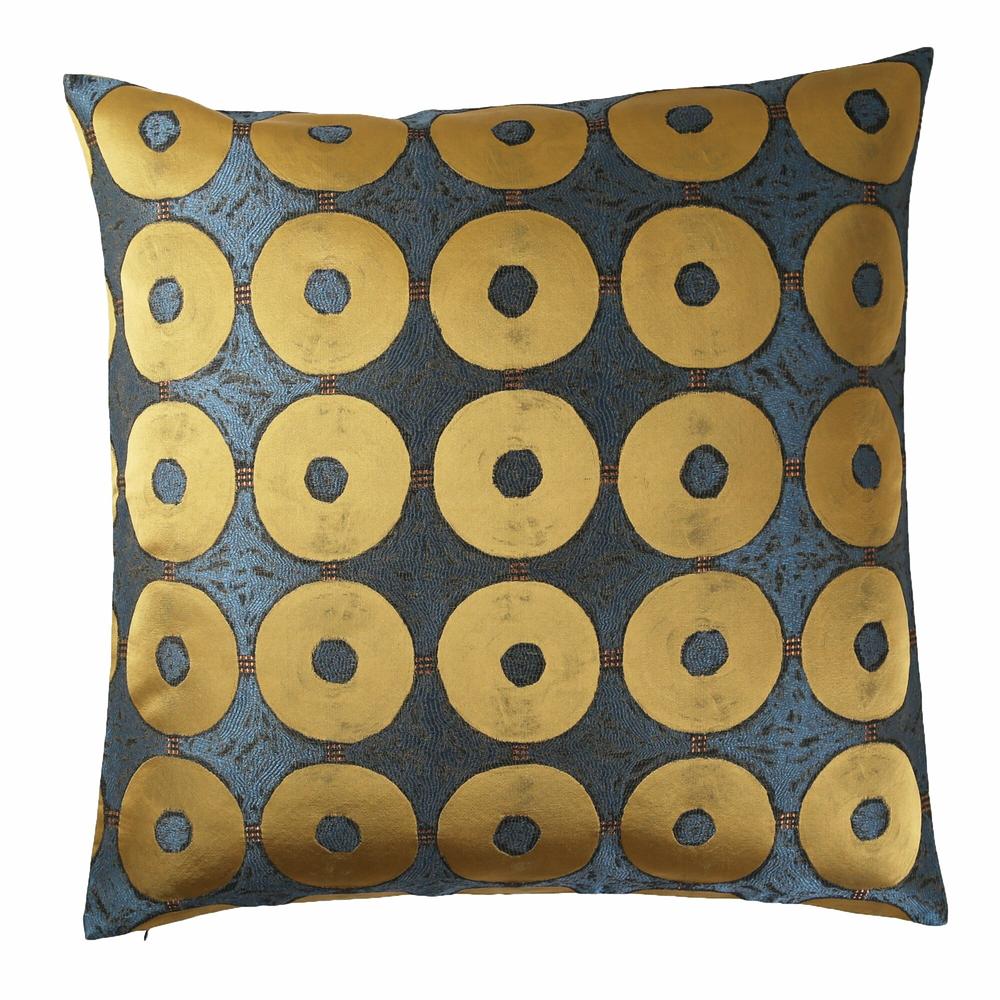 Ann Gish's Ring decorative pillows and foot quilt are Ultra-modern and daring make a beautiful splash this bedding decor. The woven texture of Ring evokes many styles and places. The throw is padded and tacked with graham ties, and reverses to solid poly satin. The pillows have a zipper closure and include a 95/5 feather & down insert.