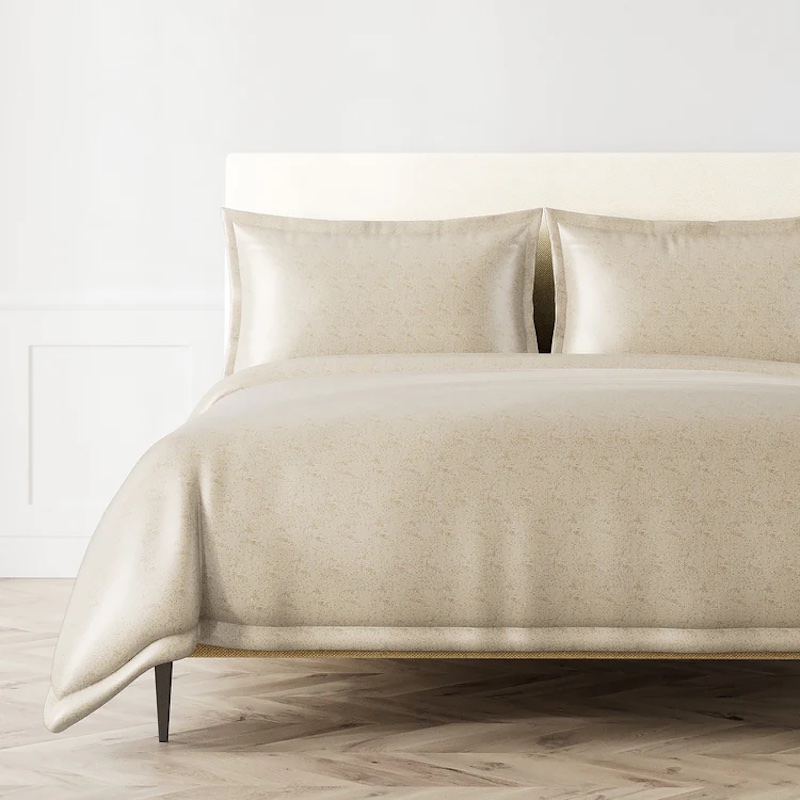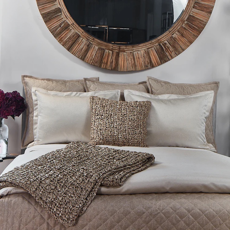 Ann Gish's Imprint has a Greek key design that is set at an angle. You can choose from Bronze, Pearl or Pewter. All 3 of them are dazzling. They boast a beautiful shimmer that is sure to bring style to your bedroom. King set includes duvet and two king shams. Queen set includes duvet and two standard shams. 100% polyester. Dry clean.