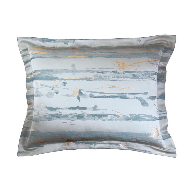 Ann Gish's Serenity Blue is breathtaking. Shades of aqua accented by gold accents create a stunning display for any room that likes to make a statement. King set includes duvet and two king shams. Queen set includes duvet and two standard shams. 100% polyester. Dry Clean.