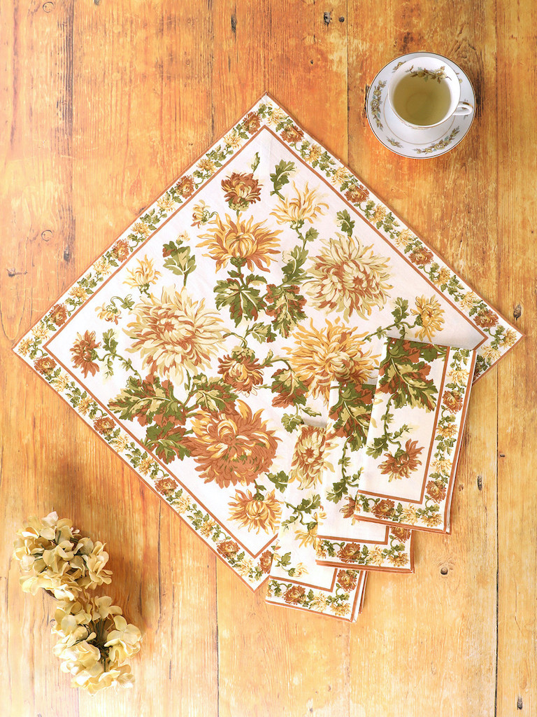 April Cornell's Antoinette Napkins are inspired by a returning heritage print from the Archives. April leaves a seat open for the wonders of nature in this delightfully drawn design showcasing the artist's fierce imagination and immutable sense of color. 100% cotton.