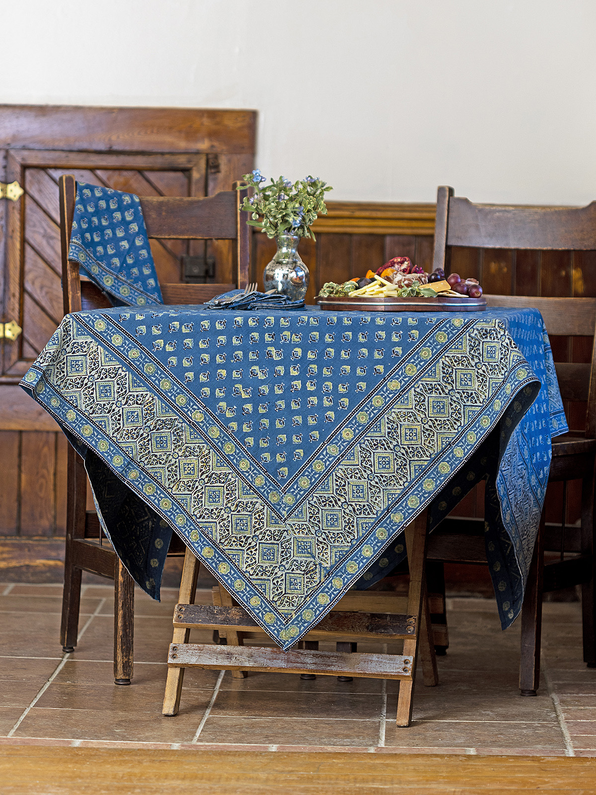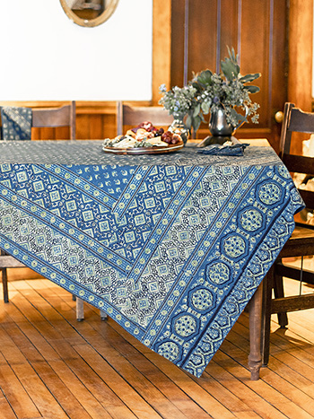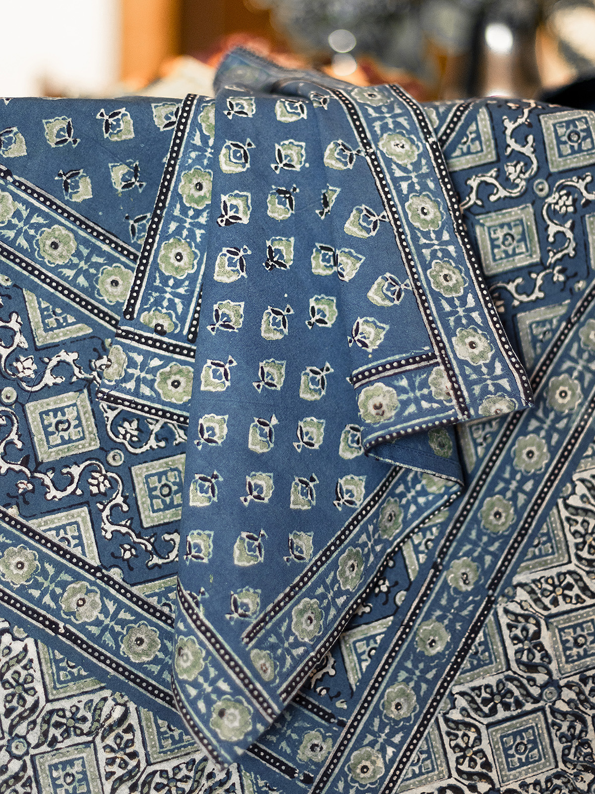 April has created a natural dye made from the earth for the Bohemian collection -- made up of yellow clay, line stone, ground amber tree sap -- as well as nature sourced Indigo dyes and Iron Rust (which brings out more vibrant colors).