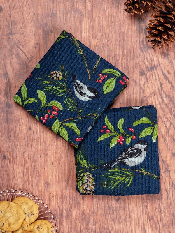 Chickadee Tea Towel Set - Navy