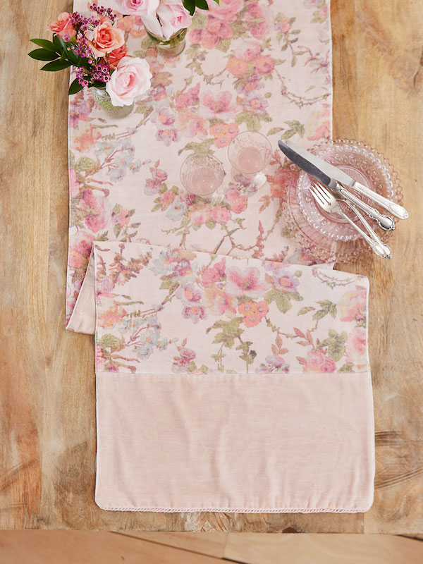 April Cornell's English Garden Velvet Runner is gorgeous. I would not just use it has a runner. You could use it as an accent on a piano, favorite sofa or wear it as a wrap. The Rose color is soft and gentle and April's original design of sweet flowers and branches is exquisite.