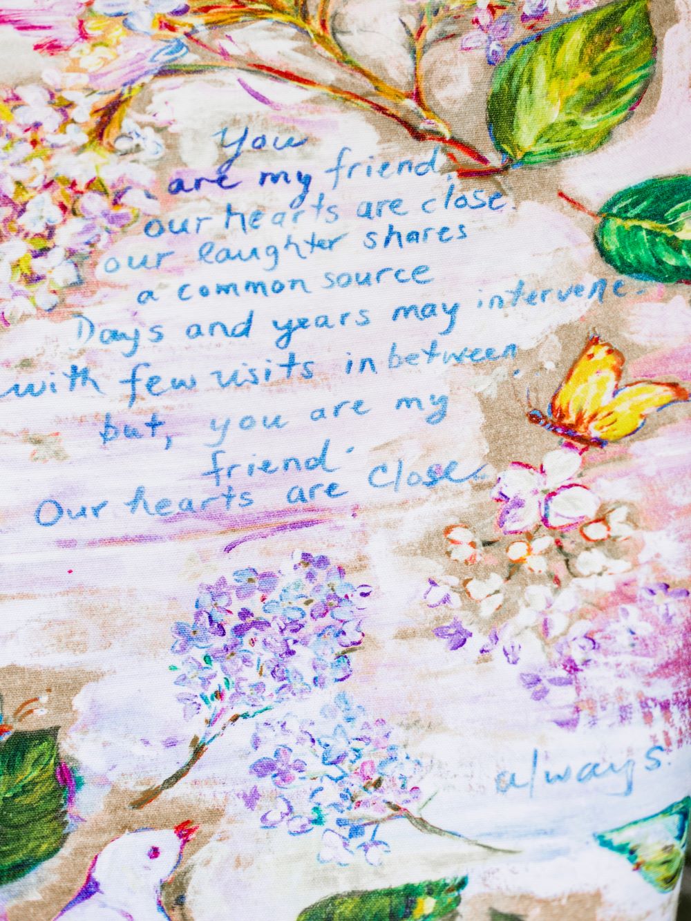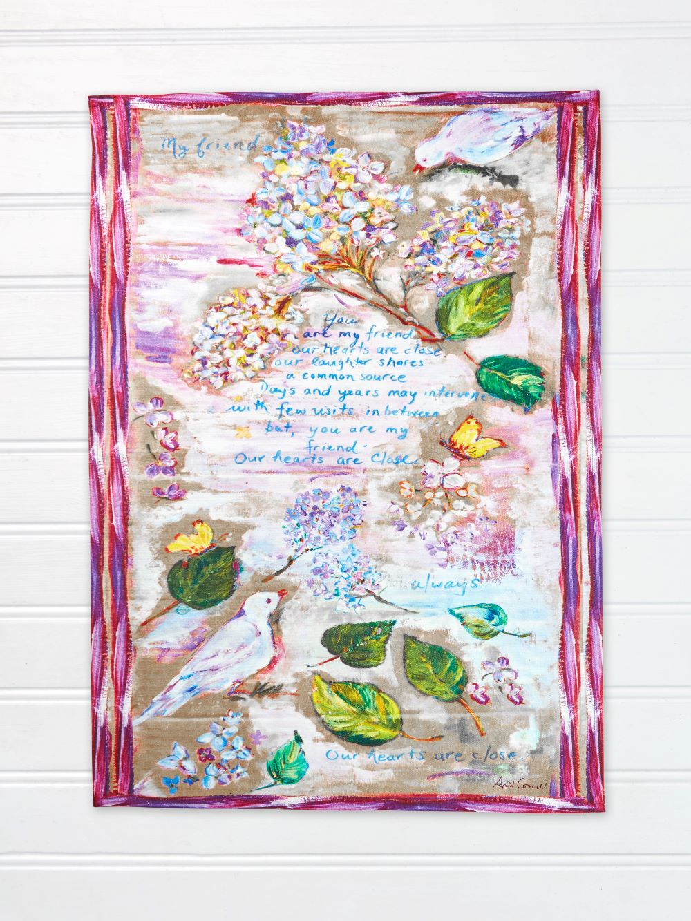 Part of April's everyday collection, My Friend tea towel is a gift that will be remembered for a good but maybe long lost friend. Says "You are my friend, our hearts are close. Our laughter shares a common source. Days and years may intervene with few visits in between. But you are my friend, Our hearts are close always. " 100% Cotton