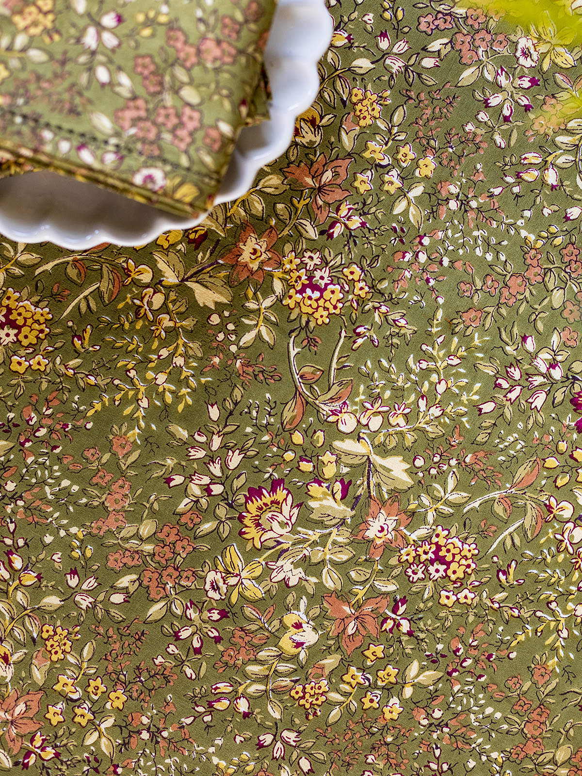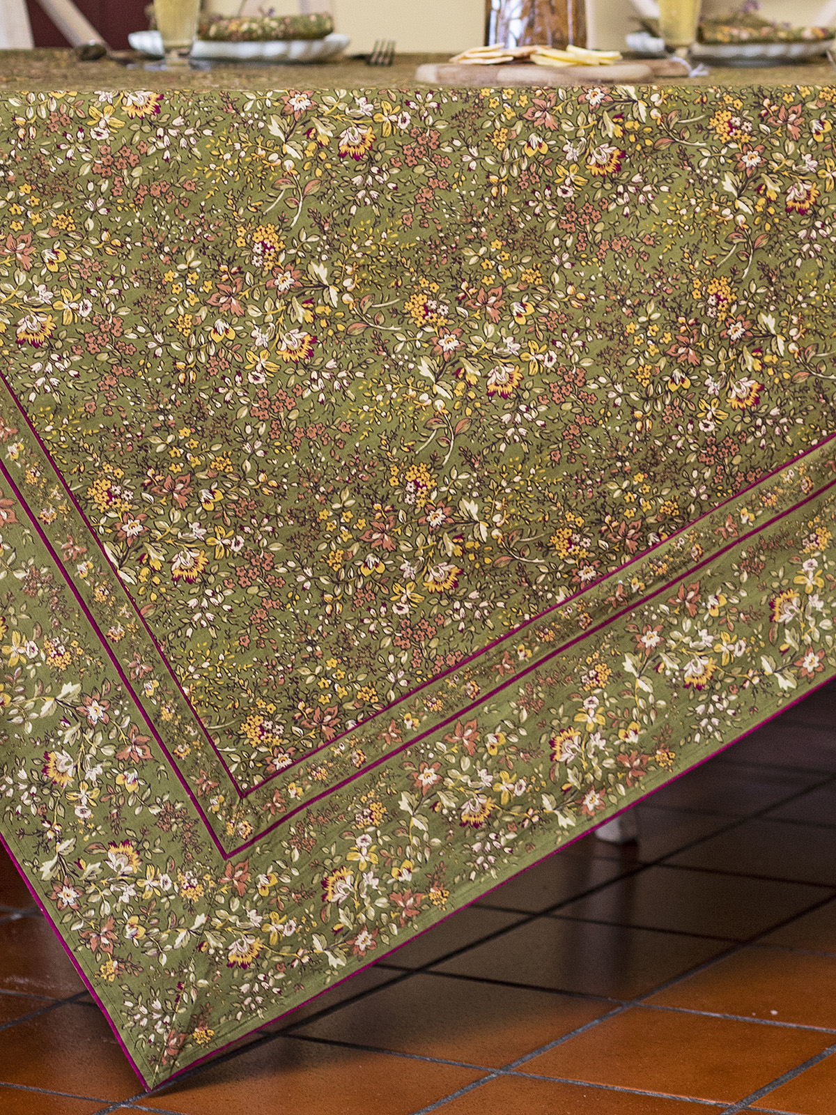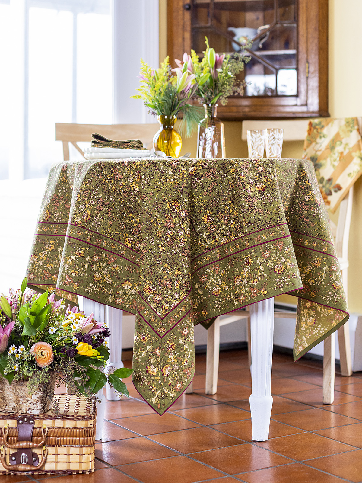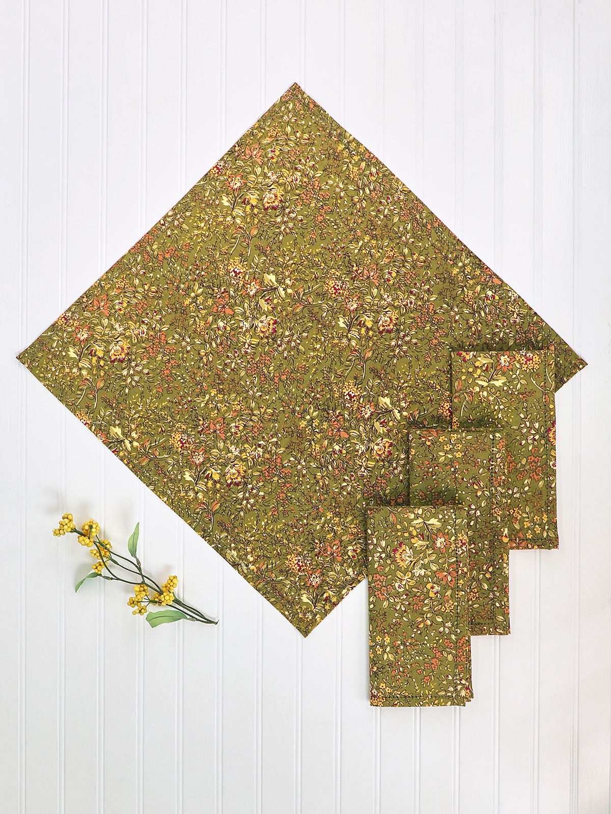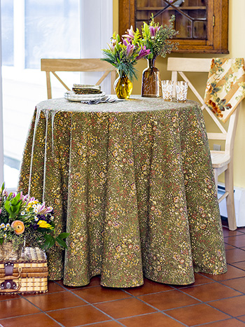 Retired -- limited to stock on hand: five sets of four naplins, one 36" square, one 88" round and one 60x108