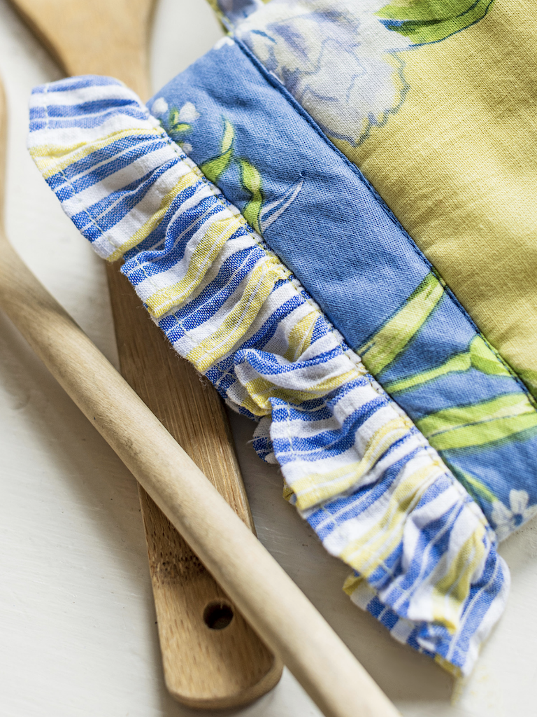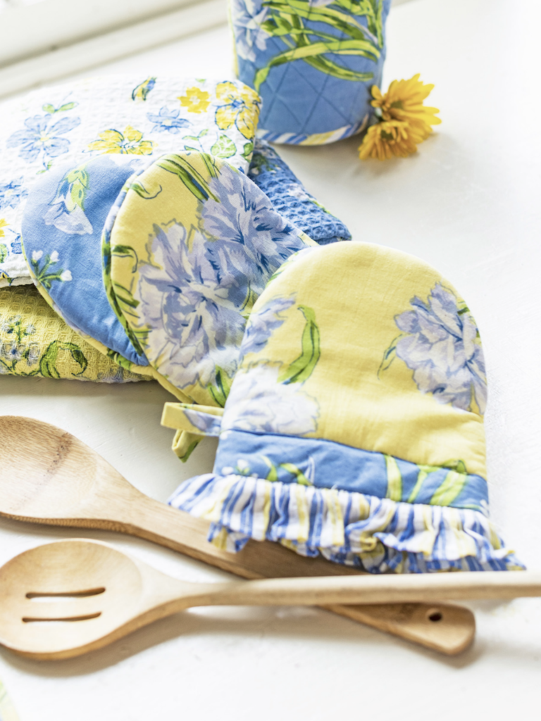 April Cornell's Provence Patchwork Mini Mitt Set is a necessary complement for every kitchen, these original oven mitts add just the right colorful touch to enliven a happy home! This pattern spring to life in beautiful quilted designs and are lined with raw cotton for functional heat absorption. The mitts come in a set of two. 100% cotton.