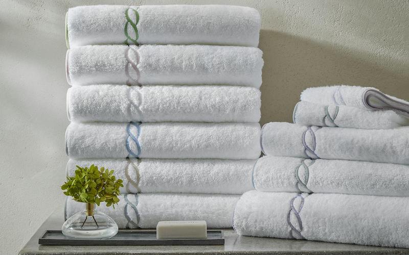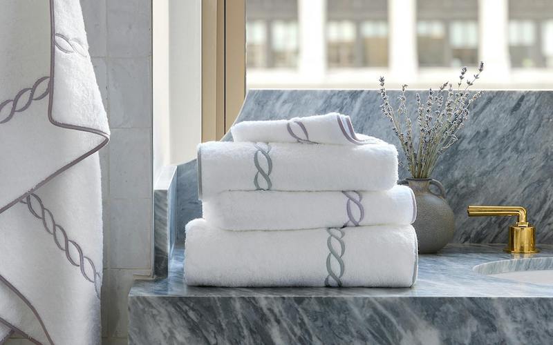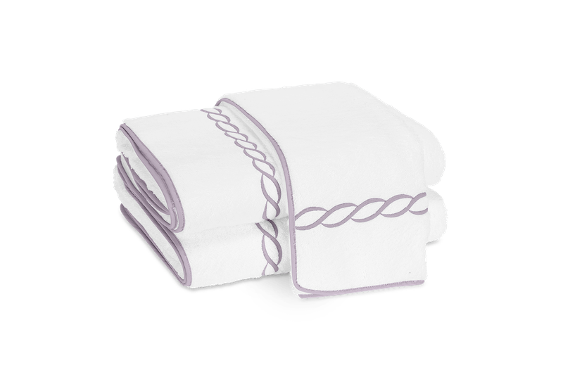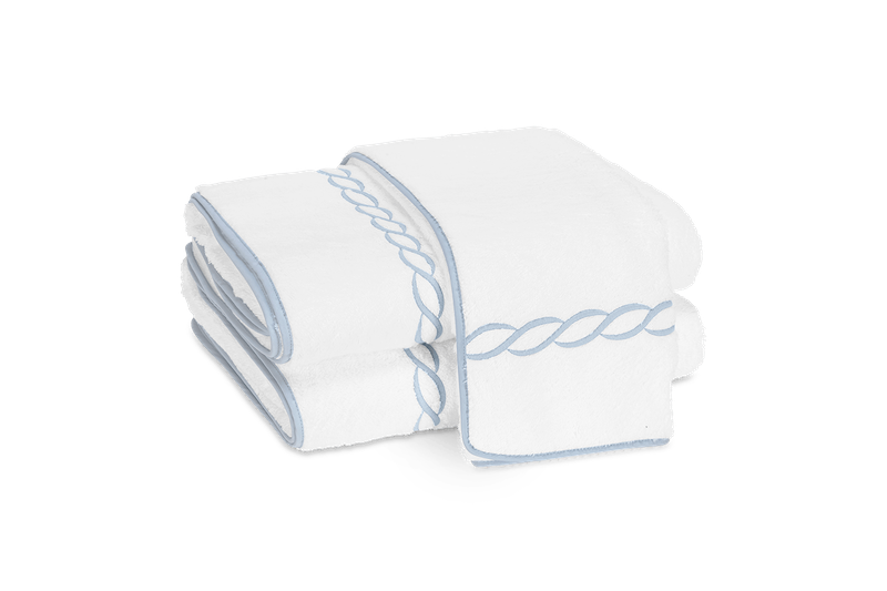 Matouk's Classic Chain bath collection is Cairo long-staple cotton terry towel with an embroidered chain border. Heralding a classic Greek motif, the chain embroidery creates a timeless, 100% long staple cotton terry bath towels. Features a convenient hanging loop on the long end of each towel. Made in the USA of fabric from Portugal.