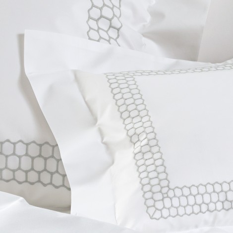 Liana features an embroidered three-layer honeycomb band on our top-quality 520-thread-count Ceylon percale fabric. Designed to coordinate with our Terra duvet and shams, Liana is worthy of the master bedroom, but can be easily styled with more casual items. Base fabric is Ceylon 520 thread count percale. Made in the U.S.