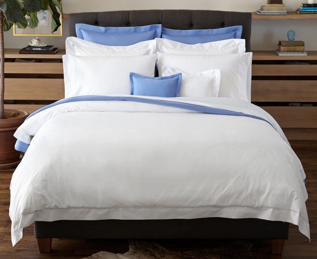 that softly frames the percale sheeting, this Egyptian cotton collection
