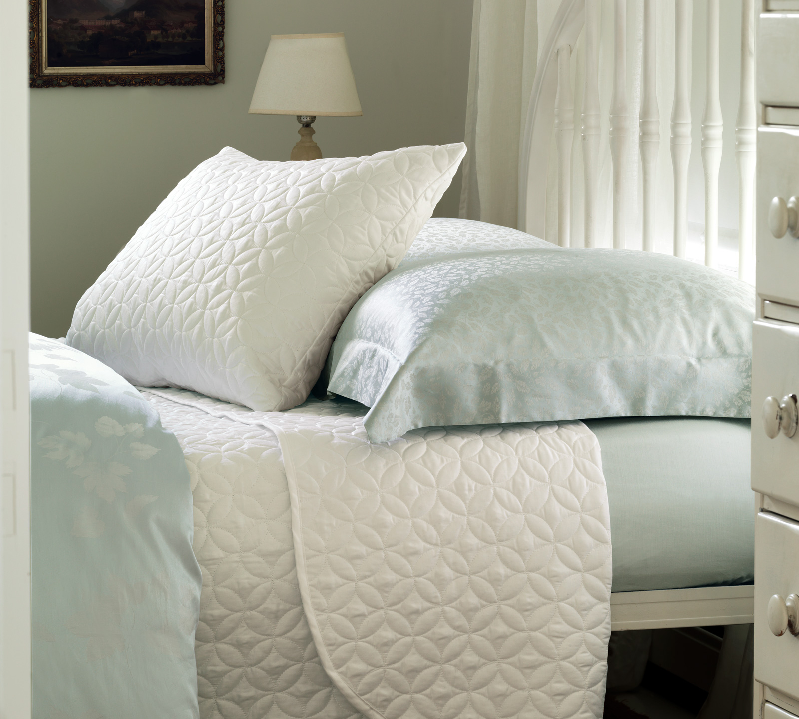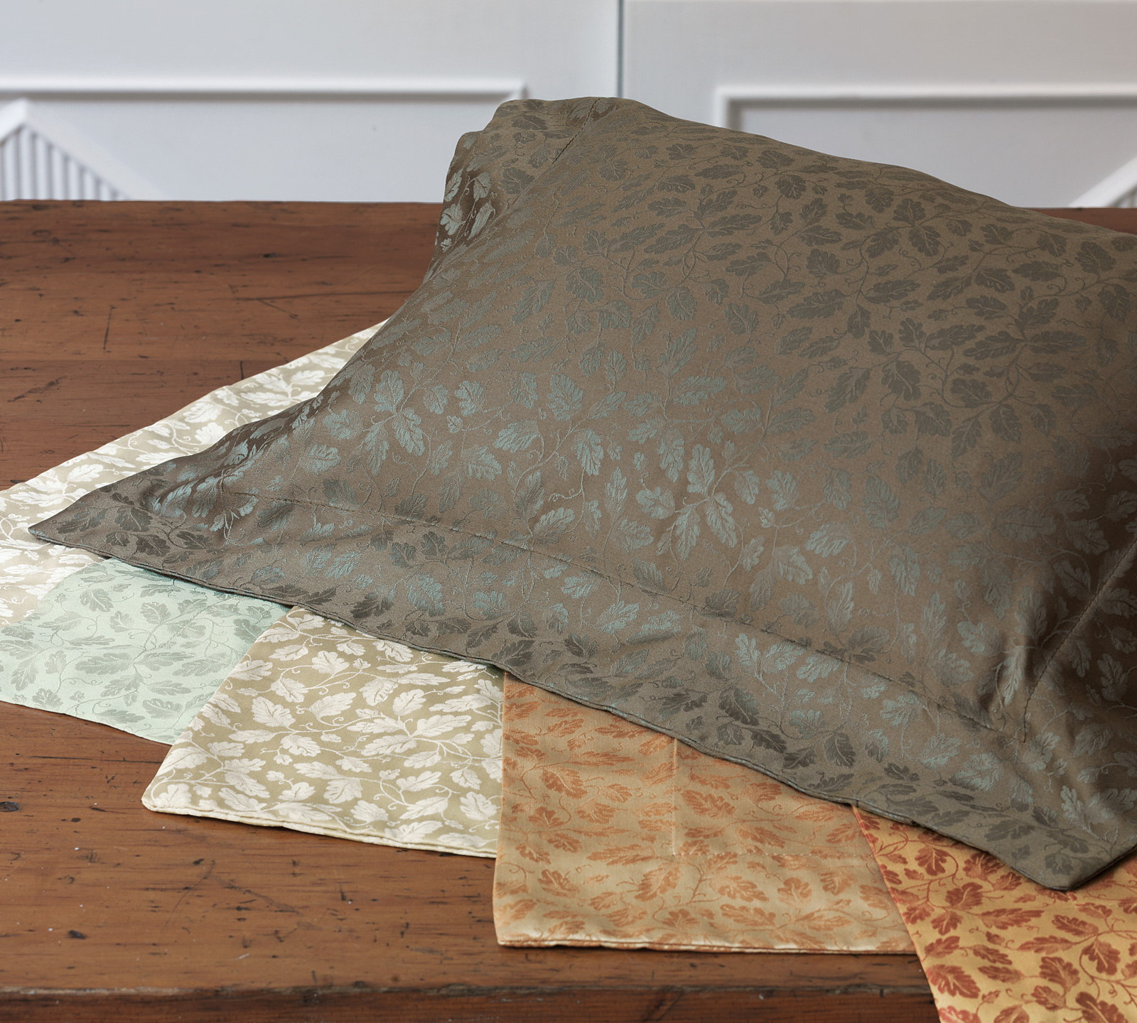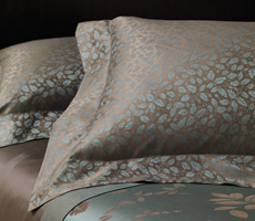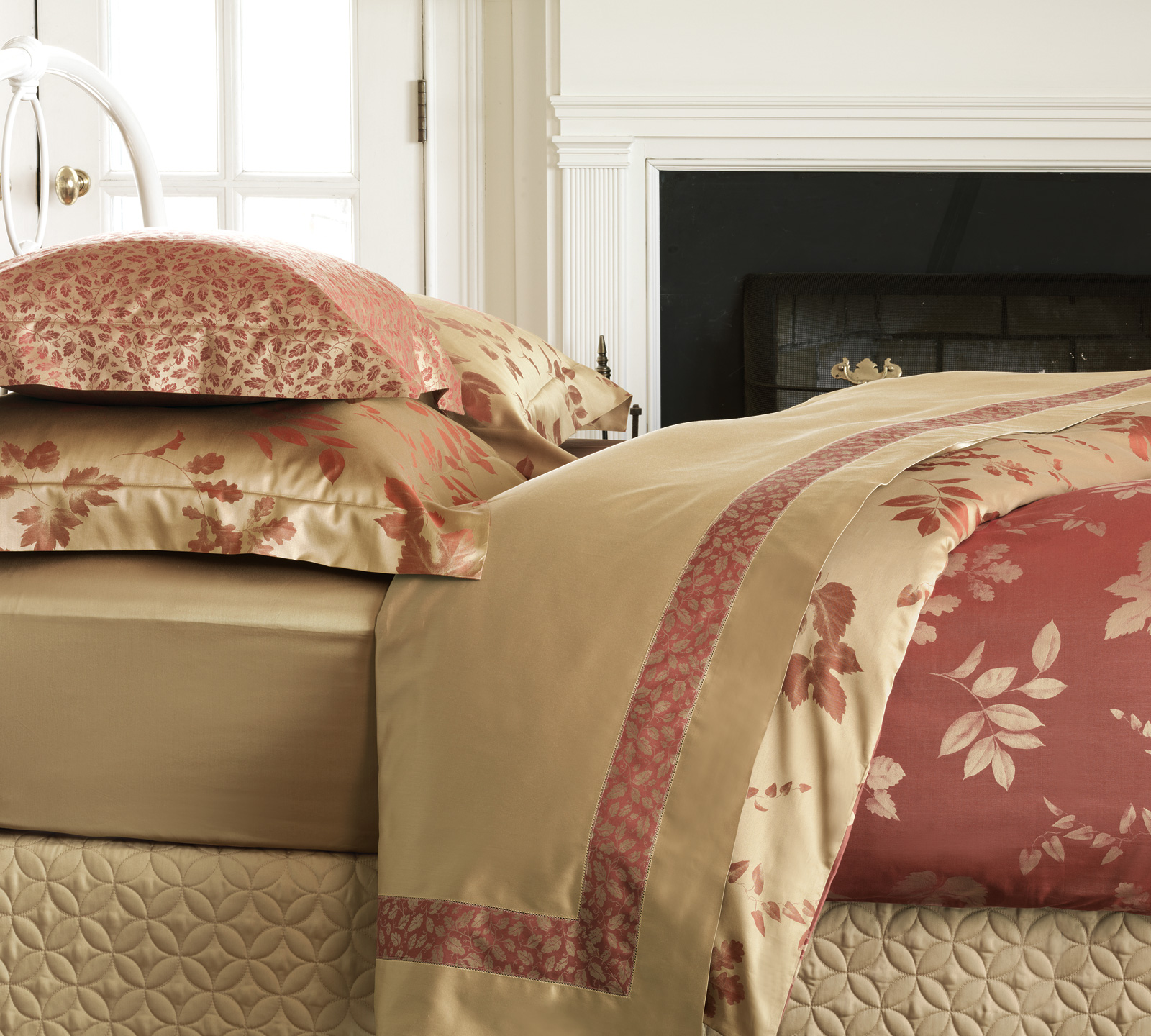 FOGLIA (foglia means leaf in Italian): Leaves have always been a source of inspiration for me as design elements. Foglia is a classic design that can be traditional or fashion forward, depending on color. The duvet cover reverses to itself. Coordinates with Foglia Grande (permanently out of stock) and Foglia Ribbon.