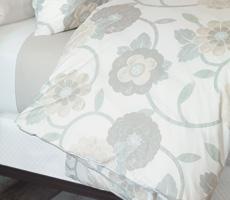 Gramercy is our first step into a younger, hipper and more contempory design aesthetic. It features a stylized floral in muted, neutral colors with a touch of gray - the new natural. It is printed in Italy on 100% Italian cotton percale.