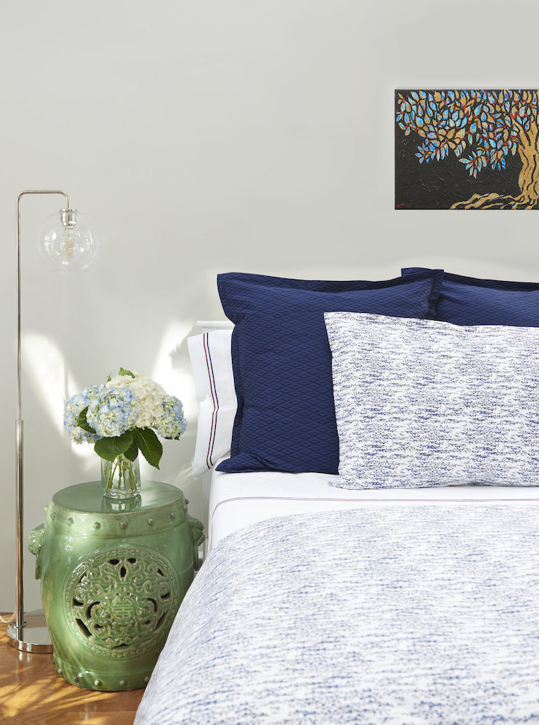 Sara is a printed pattern that looks fresh and yet contemporary. The design is created by a mix of tonal paint splatters. A unique texture. Sara is available in Bordeaux, Navy and Sea Glass. Shams are constructed with a 1” flange. Duvet covers can be self reversing or reversing to Mike.