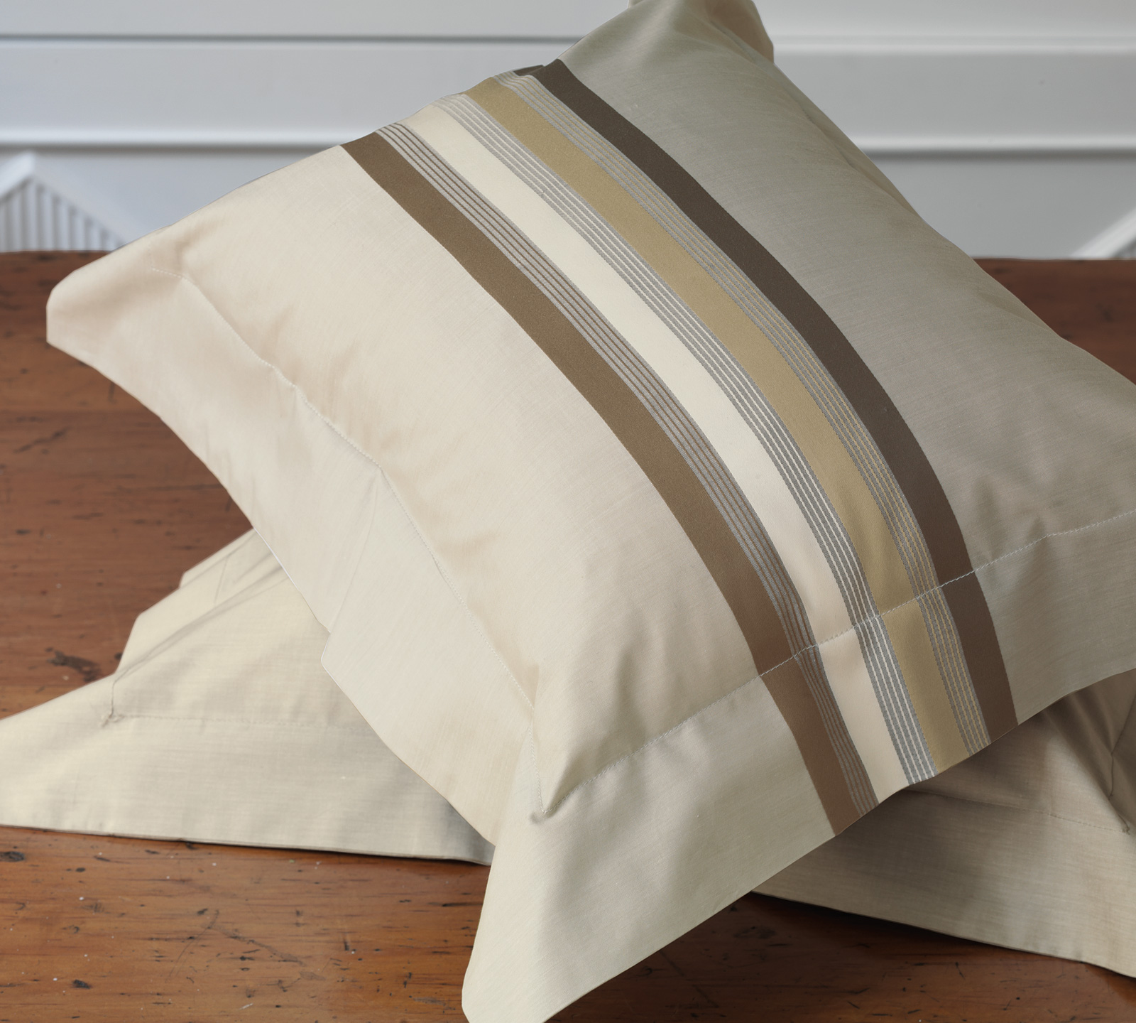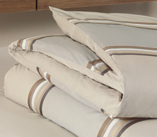 Princeton duvet covers feature a large horizontal, multi-colored stripe running horizontally between two alternating fields of solid beige and sage. It coordinates with Darmouth solid sheeting and is part of our "collegiate menswear collection", sophisticated and masculine.