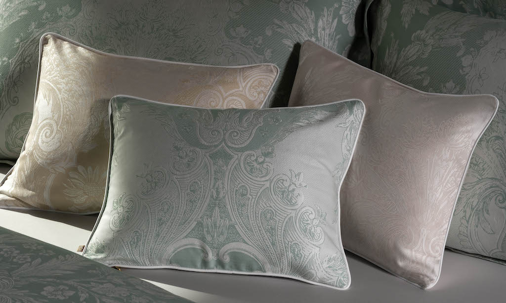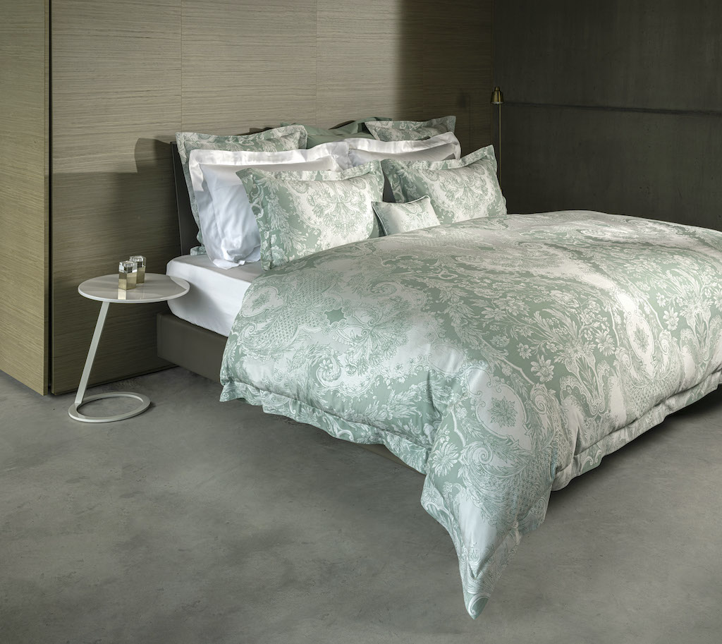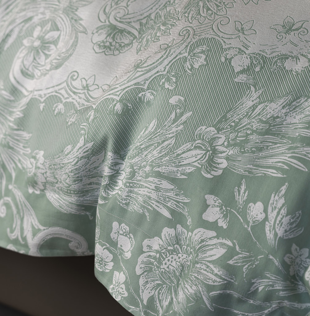 Celso de Lemos' Pompadour pays homage to the legendary Madame of the same name, a member of King Louis XV's court. Renowned for her impeccable taste and influence on art and fashion, this bedding epitomizes sophistication Intricate florals blend with regal patterns found in lavish interiors to elevate the master bedroom into a sanctuary of luxury and style. A sumptuous blend of 80% Giza Egyptian extra long staple cotton and 20% silk.