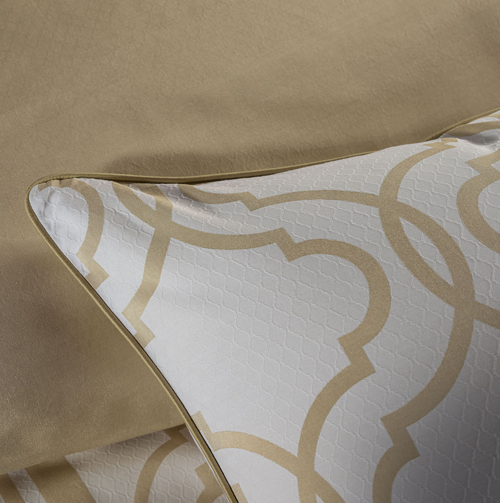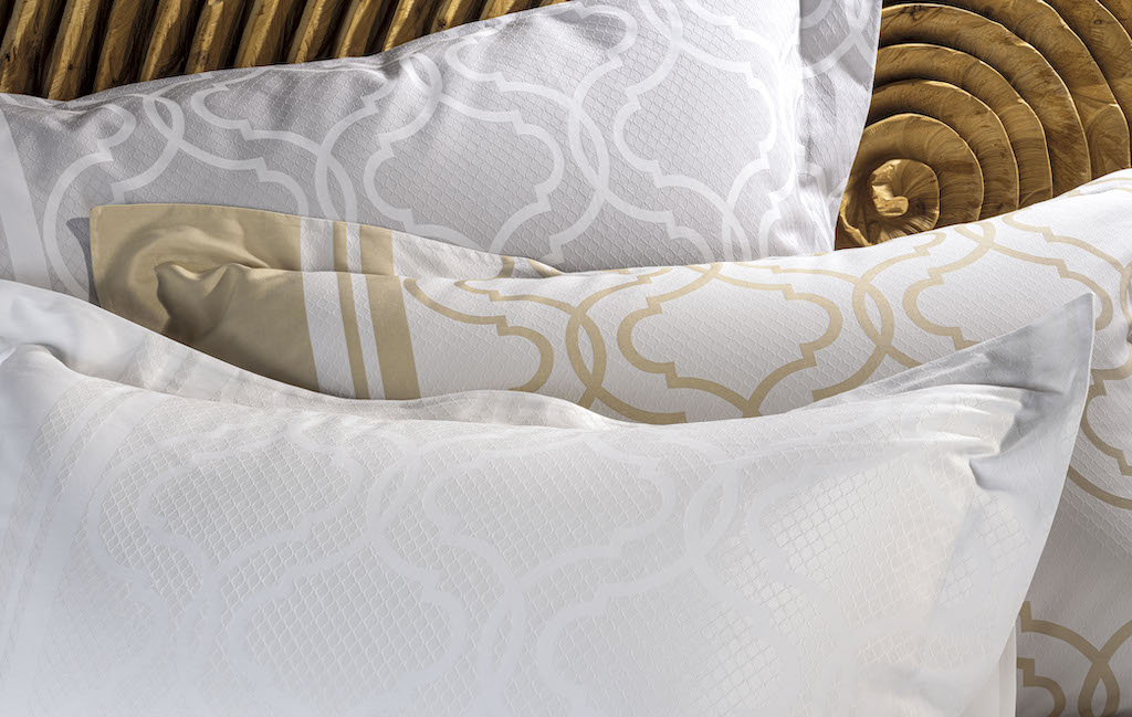 Roowa Bed Linens by Celso de Lemos, have a timeless elegance designed for the master bedroom. A jacquard woven pattern dominates the center of the sateen bordered pieces. These linens are designed to bring a refined touch to your sleep space, offering a soft, breathable fabric that ensures comfort throughout the night. The carefully selected materials and intricate details reflect Celso de Lemos’s dedication to quality and style, transforming your bed into a serene retreat. Perfect for those who appreciate understated luxury, Roowa Bed Linens combine durability with a sophisticated aesthetic that complements any decor and are available in select colors.Experience peaceful rest wrapped in elegance.