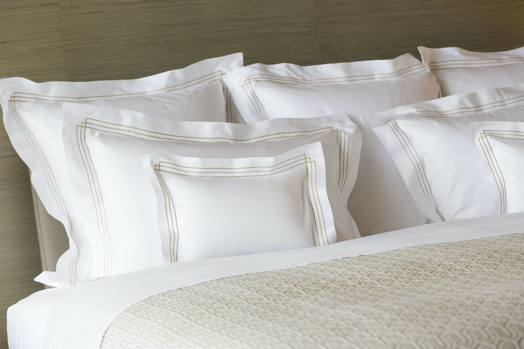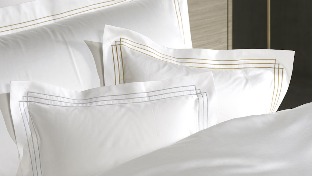 Quadra is an elegant play of lines, embroidered on this beautiful cotton set of sheets, which intersect into a three-dimensional frame. 100%
