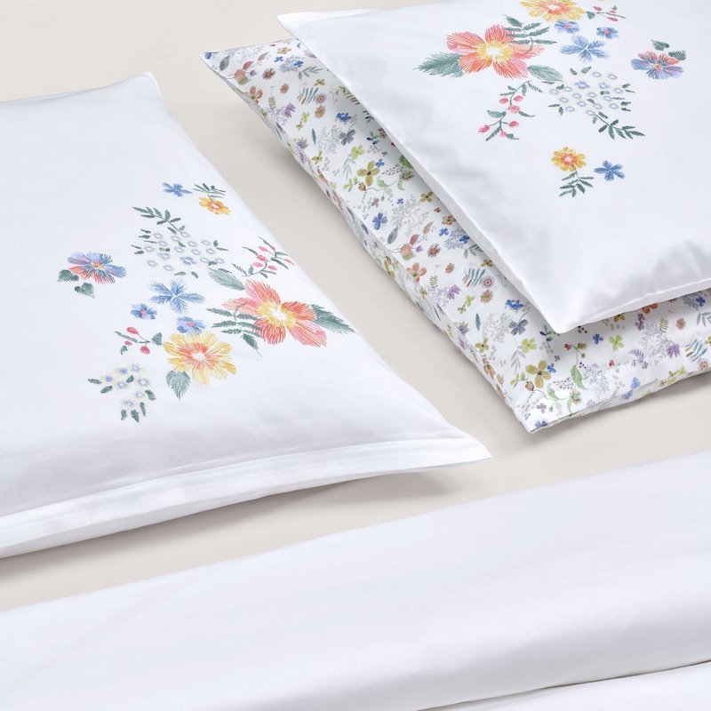 Christian Fischbacher's Diana is a sophisticated bouquet of flowers and foliage is often a source of quiet delight. Prepare to be fascinated when you take a closer look at the hand-drawn motifs, which are executed as precise embroidery. Diana is an enchanting design with close attention to detail. It complements Giardina beautifully.  Satin Embroidered.  100% cotton.