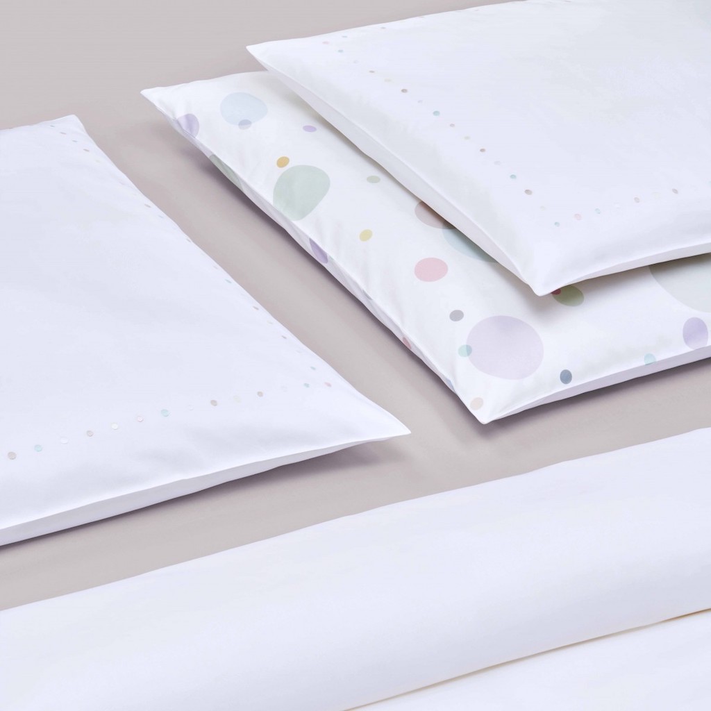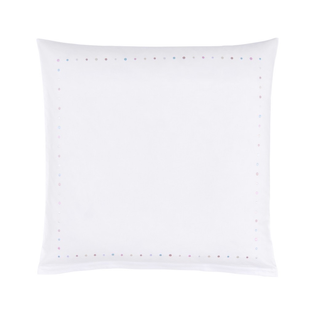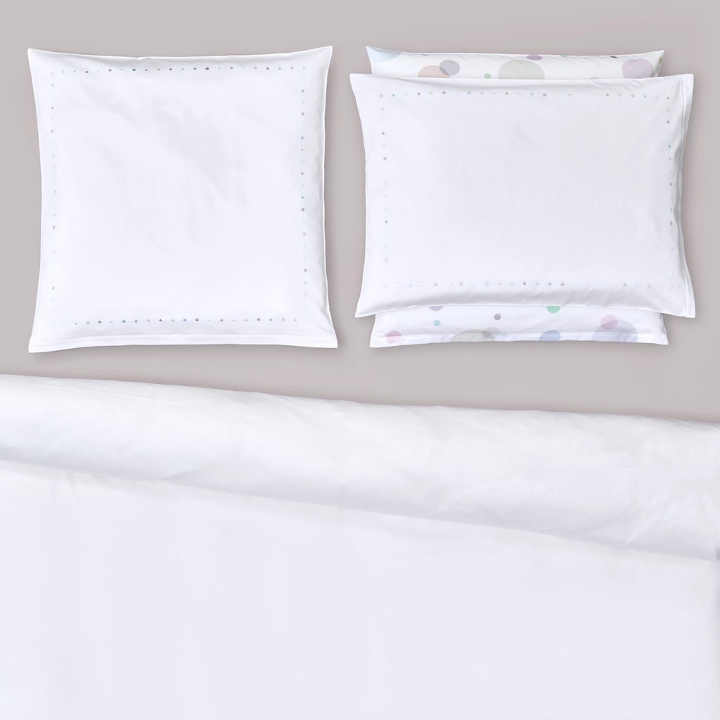 Christian Fischbacher's Twinkle's subtly embroidered colored dots effervesce in a band across the bed linen like champagne bubbles rising from a glass. On the pillows, they are strung together like a pearl necklace to form an understated and harmonious border. Pleasant dreams are almost guaranteed. This dotted designs can be simultaneously subtle and luxurious. Satin Embroidered. 100% cotton.