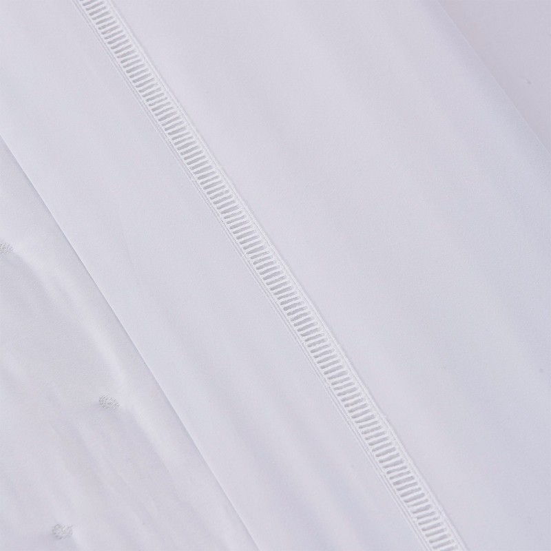 Flat sheet features 2” hem and ladder hemstitch finish.