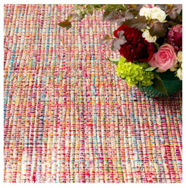 A kaleidoscope of repurposed cotton fabrics, stripped and woven with a white weft brings happy home with this everyday, everywhere, modern take on a rag rug. Durable construction; soft underfoot; lightweight. High- and low-traffic spaces; well-used family areas like hallways, bedrooms, and stairs. Regular vacuuming and the occasional gentle shake should keep your rug in shipshape condition. For cotton rugs, we recommend professional cleaning only.