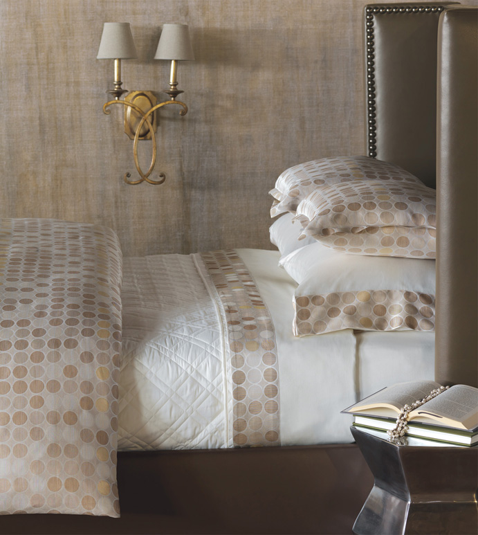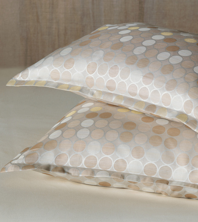 de' Medici's Adrienne is a champagne-infused glamorous collection. This light, bubbly collection brings its polished charm to any room with versatile neutral tones and subtle metallic accents. Its metallic jacquard duvet cover sits alongside velvet-ribbon sateen and a faux fur decorative pillow for an extra cozy, textured finish. Knife edge finish. Hidden button closure. Ties inside duvet cover. Ribbon Shams are available in king, queen and standard. They are 300 thread count sateen with velvet ribbon around the border. They have a 1 1/2" self flange and have an horizontal flap closure. The European sham is in Adrienne like the duvet cover and has a 1" self flange edge finish and flap closure for easy care.