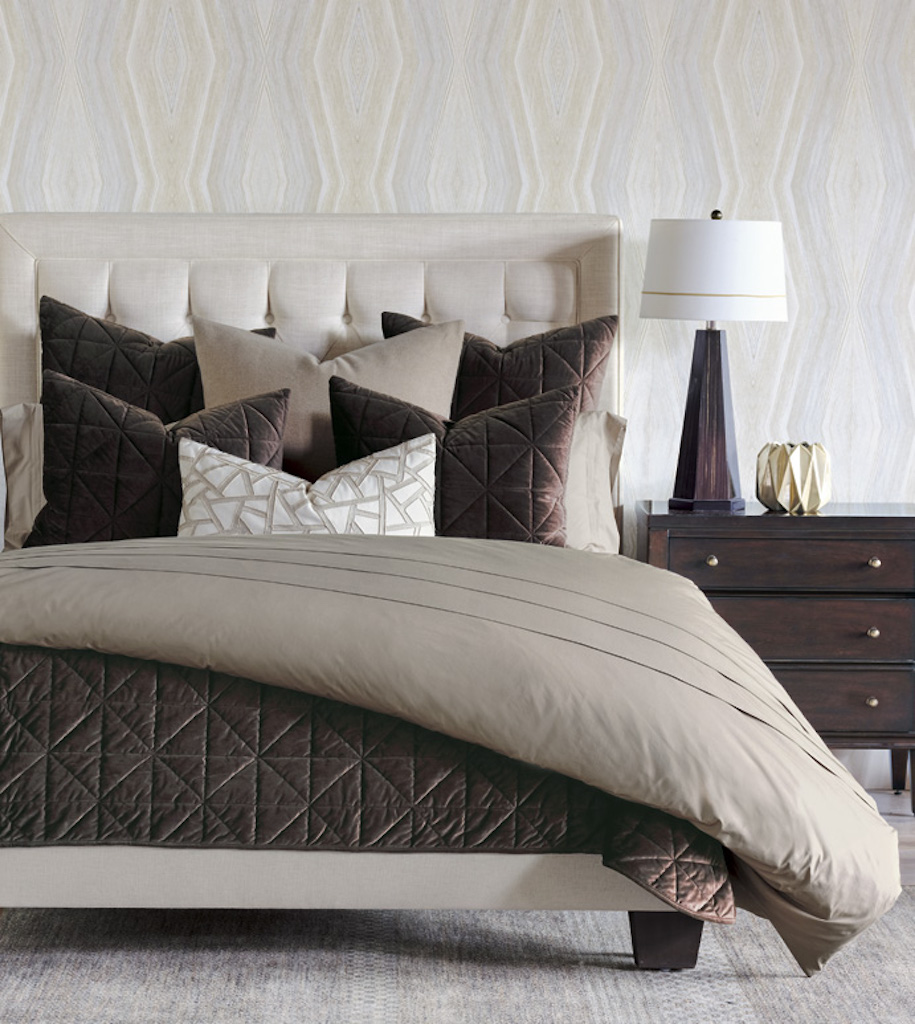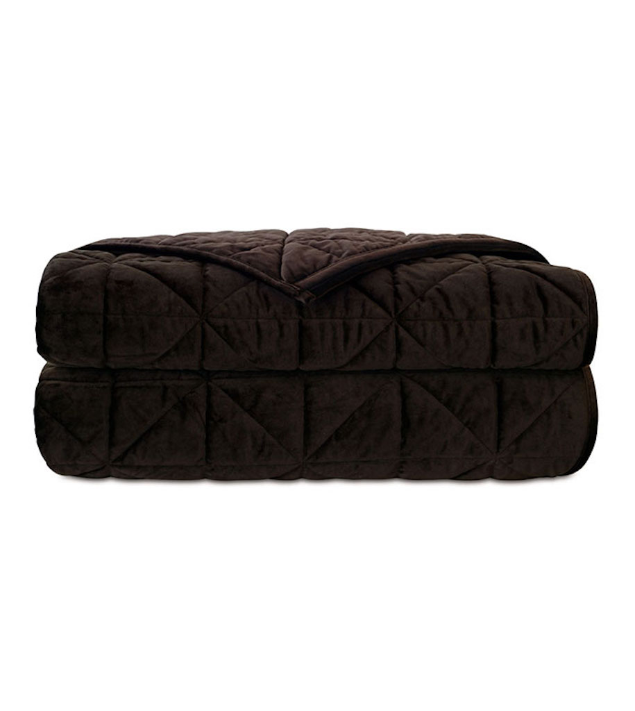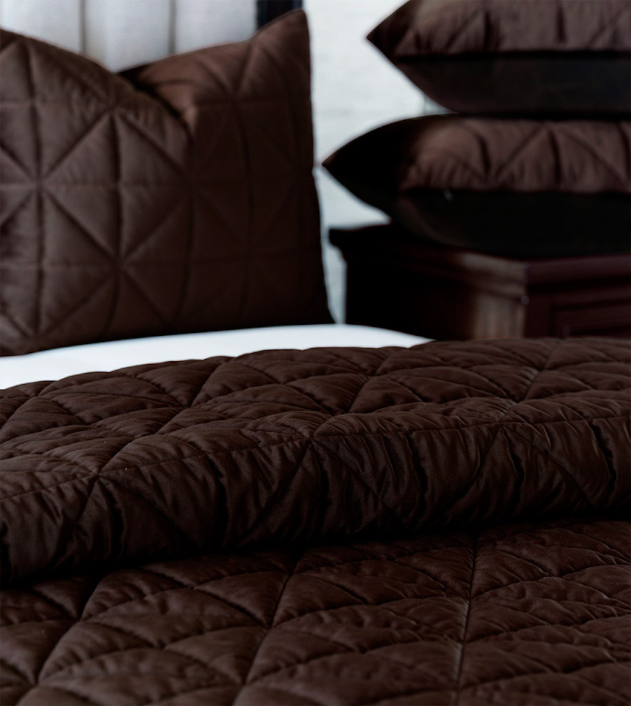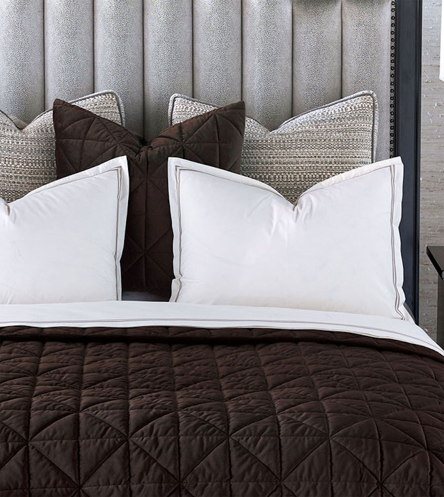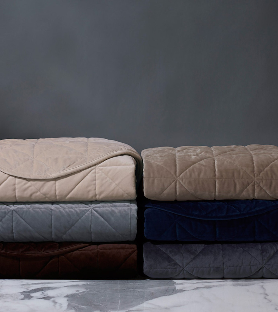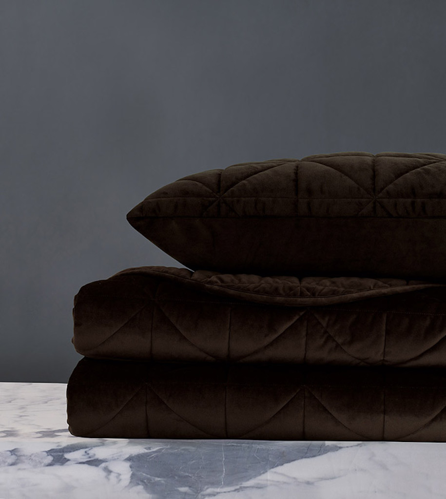 De' Medici's Nova comes in six colorways - from jewel-toned indigo to neutral ivory - alternate between cool matte and glamorous sheen depending on pile direction. Shams are backed in unquilted velvet while coverlets are backed in color-matched percale for added comfort, and all products are 100% machine washable for everyday ease of care. Nova drapes the bed in snug style. Silky smooth velvet, quilted in a chic geometric design, makes these shams and coverlets irresistibly cozy. Coverlets reverse to Chiaro Classic of matching color, a 200 thread count percale. They have rounded bottom corners with edging welt finish. Shams have a knife edge finish and reverse to Lumino velvet. Invisible zipper closure for easy care.
