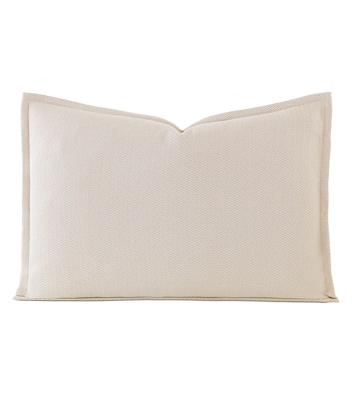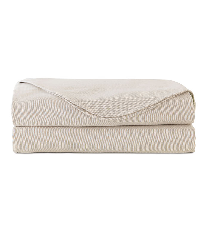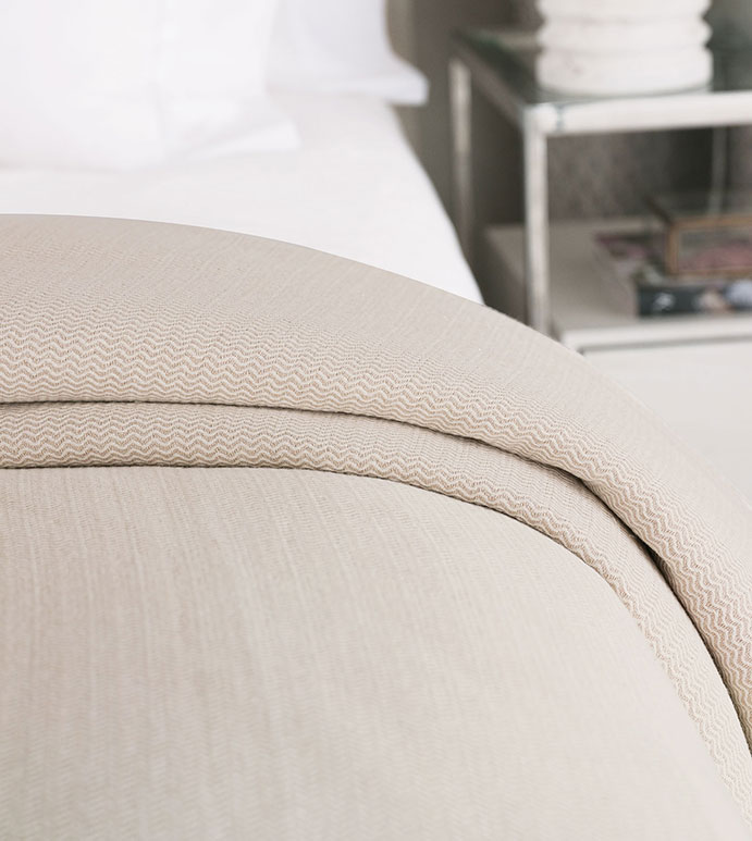 De' Medici's Coperta is a neutral cotton coverlet and shams in a barely noticeable chevron finish. 1” topstitch on top and rounded bottom corners. 99% cotton and 1% lurex. Woven in Portugal. Made in USA.