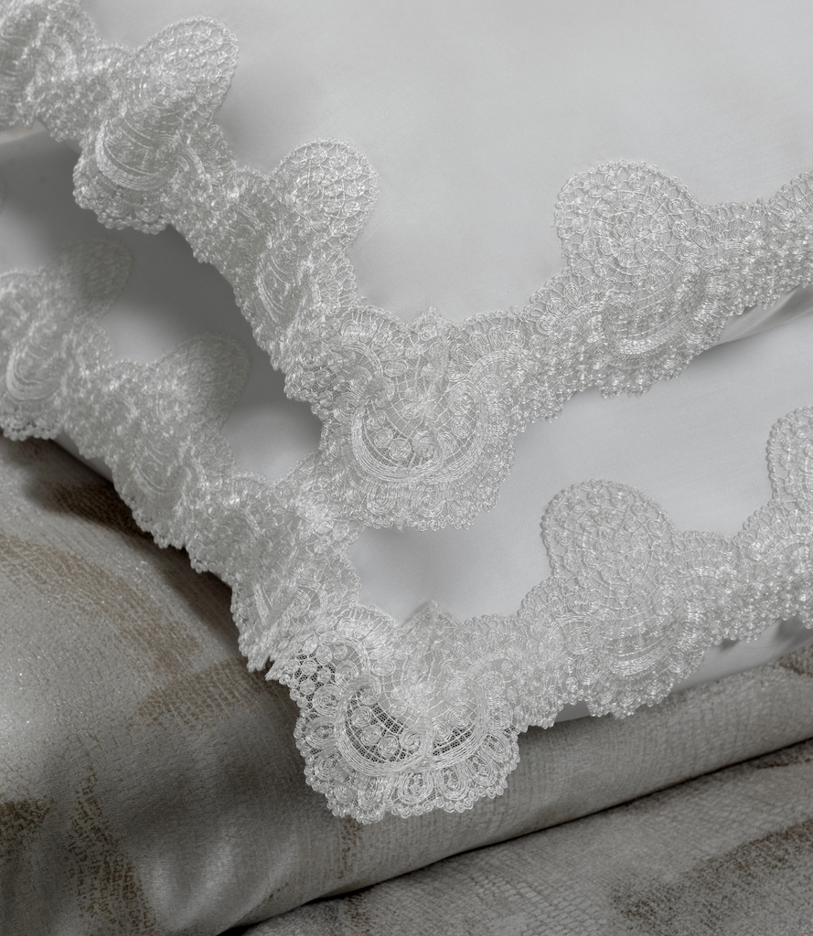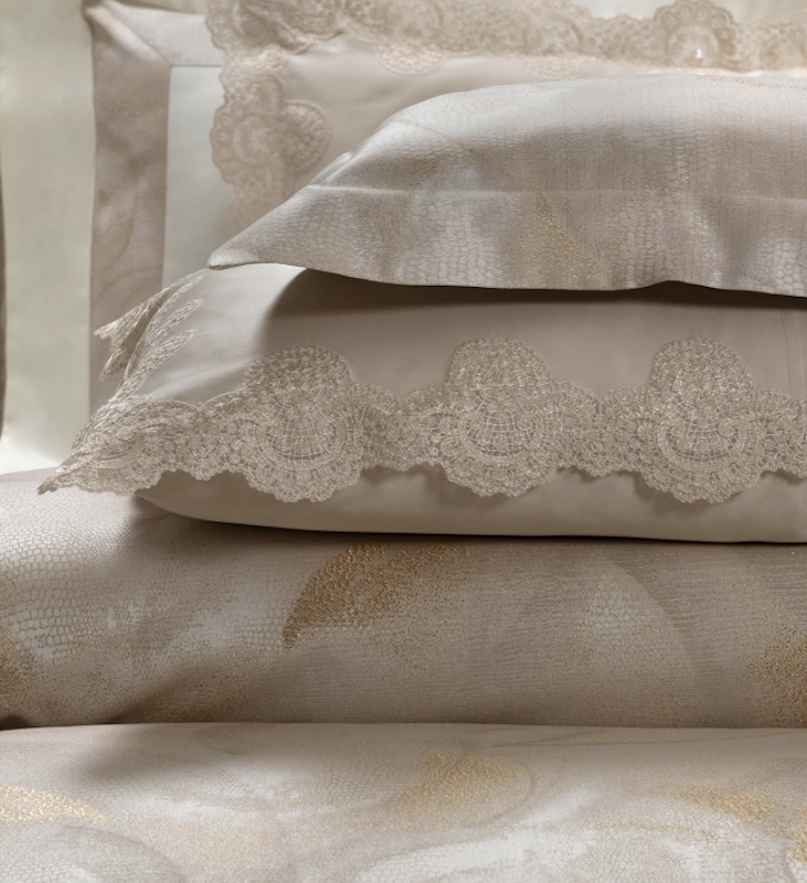 applied to the edges of the pillowcases and toweling to enhance the aesthetic effect of the entire composition. Made in Italy.