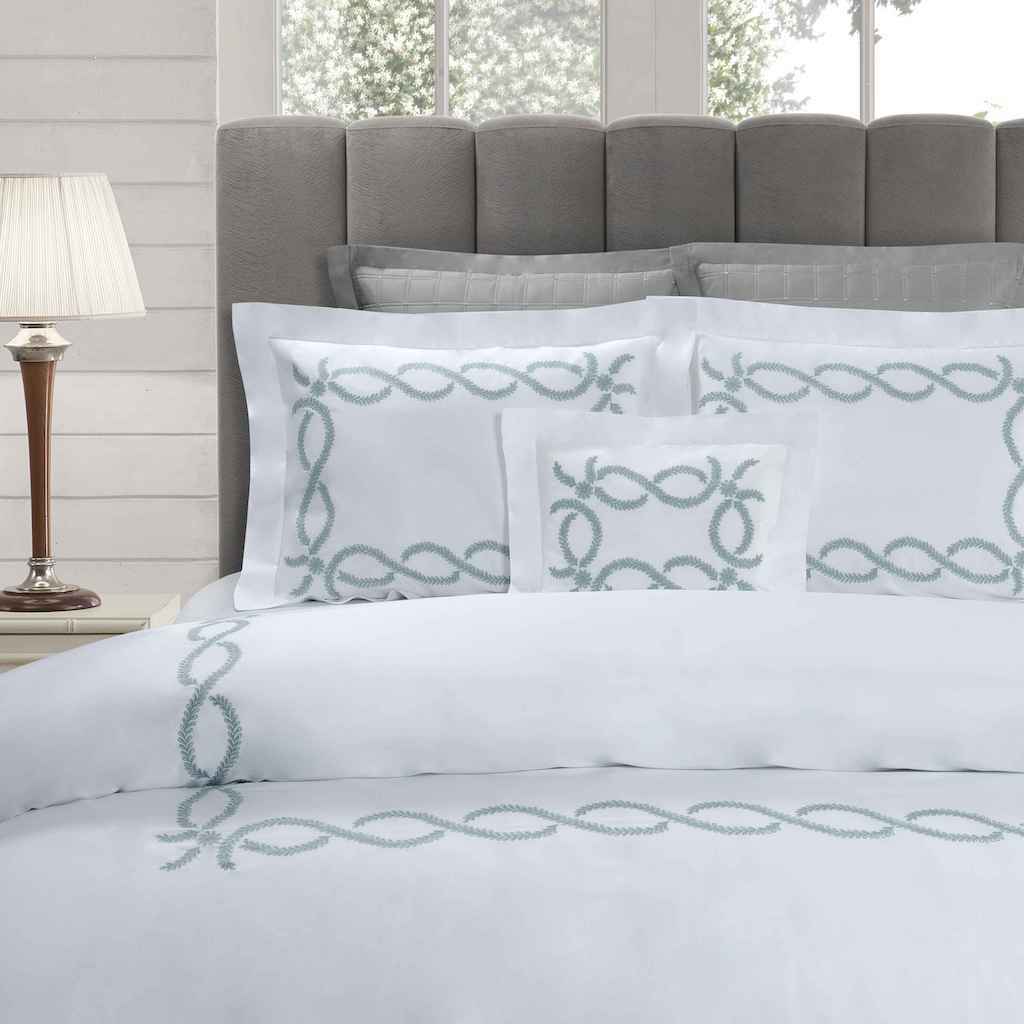 Dea Mirea Embroidery on Raso Sateen is sweet and graceful. 100% Cotton multicolor threads embroidery. Made in Italy.