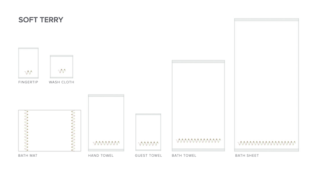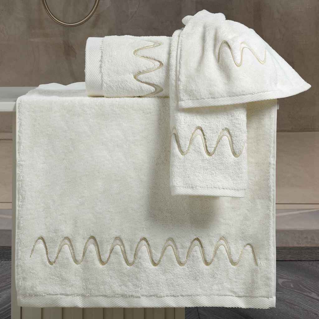 Timothy Corrigan for Dea's Pelago Embroidery Soft Terry Towels are luxurious. They represent the historical essence of truly skilled Tuscan craftsmanship. This is a skill that is handed down from generation to generation. Pelago has geometric lines that form sandy seabeds drawn by the sea waves. The design translates into an elaborated set of stitches that embellish the products of the Pelago collection drawn by Timothy Corrigan. 100% Co.