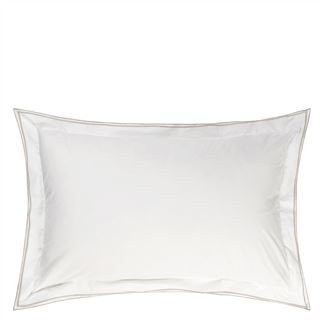 Designers Guild's irresistible fresh white on white bedding with a stylish double oxford embroidered edge for a tailored touch. We have used finest 400 thread count cotton for impeccable quality and comfort. The beautiful 400 thread count cotton bedding, the quality you would expect in a luxurious hotel. Sophisticated embroidered detailing in 11 colors on the double edged sham and repeated on the edge of the duvet cover and flat sheet. Five star style for your bedroom.