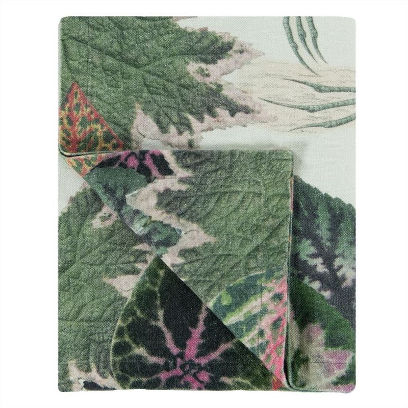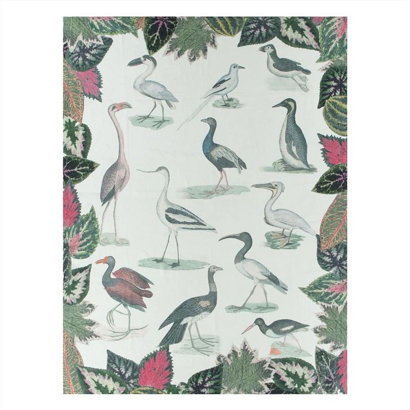 New York based Designer, John Derian's throw Birds of a Feather in parchment consists of rich autumnal clusters that are in a decoupage-style. The leaves create a dynamic border detail. The center piece is a stunning botanical-style wading birds are set on a soft parchment ground. This decorative designer interior throw is digitally printed onto pure linen with a tumbled finish and completed with a hemmed edge. 100% Linen. Size: 51 x 71"