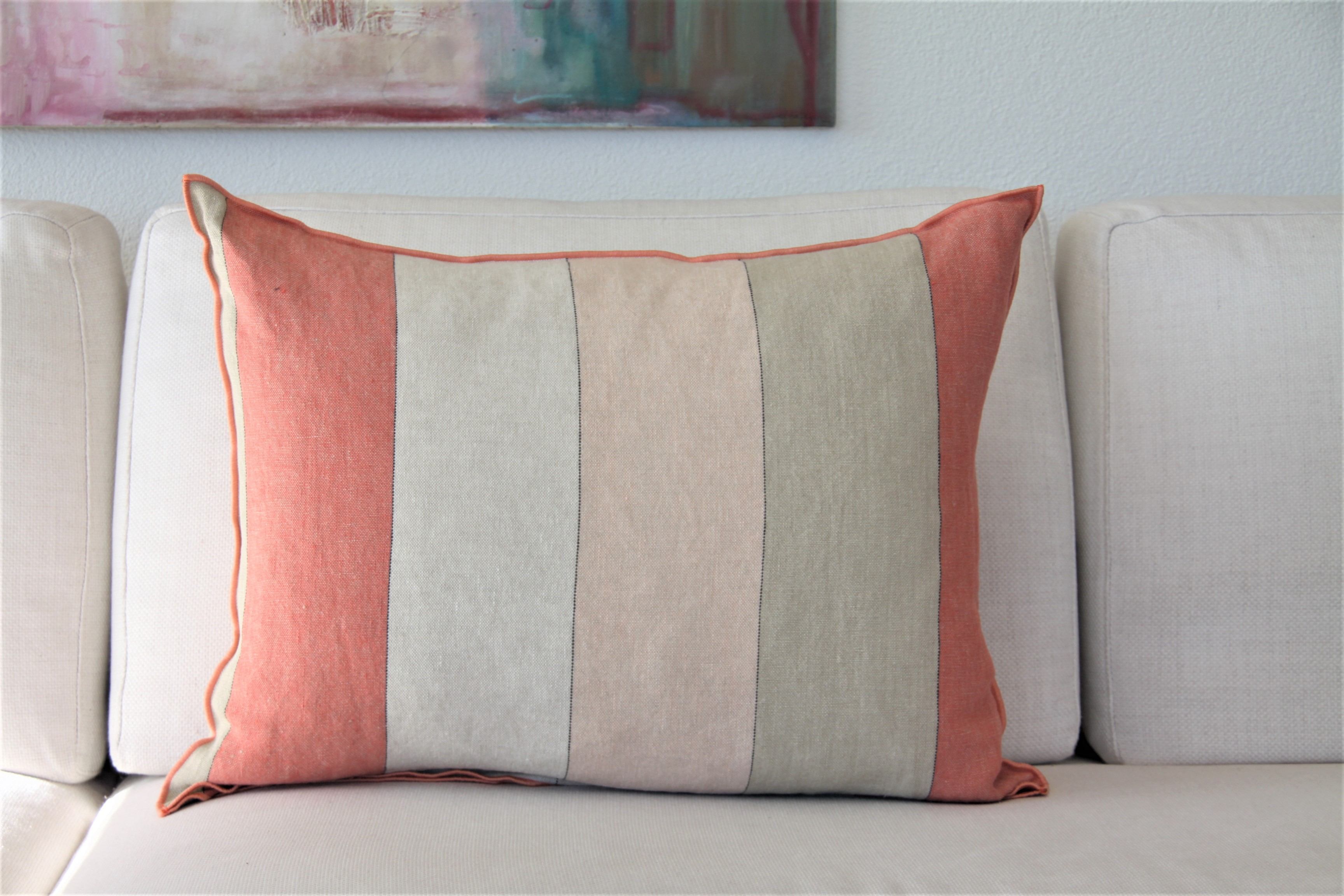Designers Guild's Brera Gessato deco pillow features large scale stripes with bands of corals and natural tones separated by a modern thin black line. Woven in Italy from 100% pure linen. Fully reversible and finished with an elegant overlocked edge. Inclusive Cushion Pad.