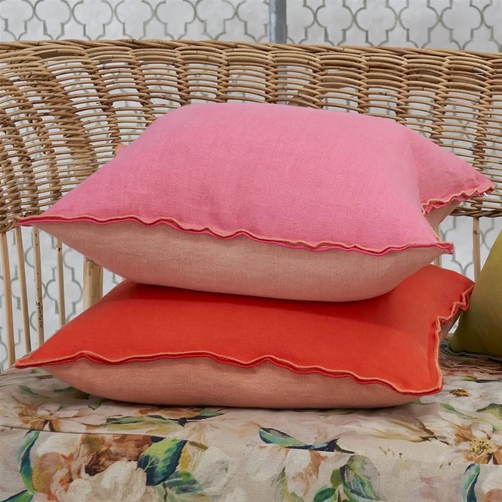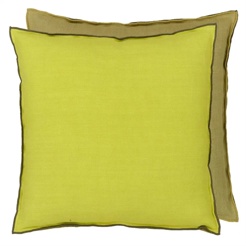 Designers Guild Brera Lino is a two tone pure linen contemporary square decorative pillow. Available in exciting shades that reverse to a complimentary shade with unique double seams. Finished with an over locked stitch border. Brera Lino is the perfect for any scheme alone or paired with other decorative pillows. 100% linen.