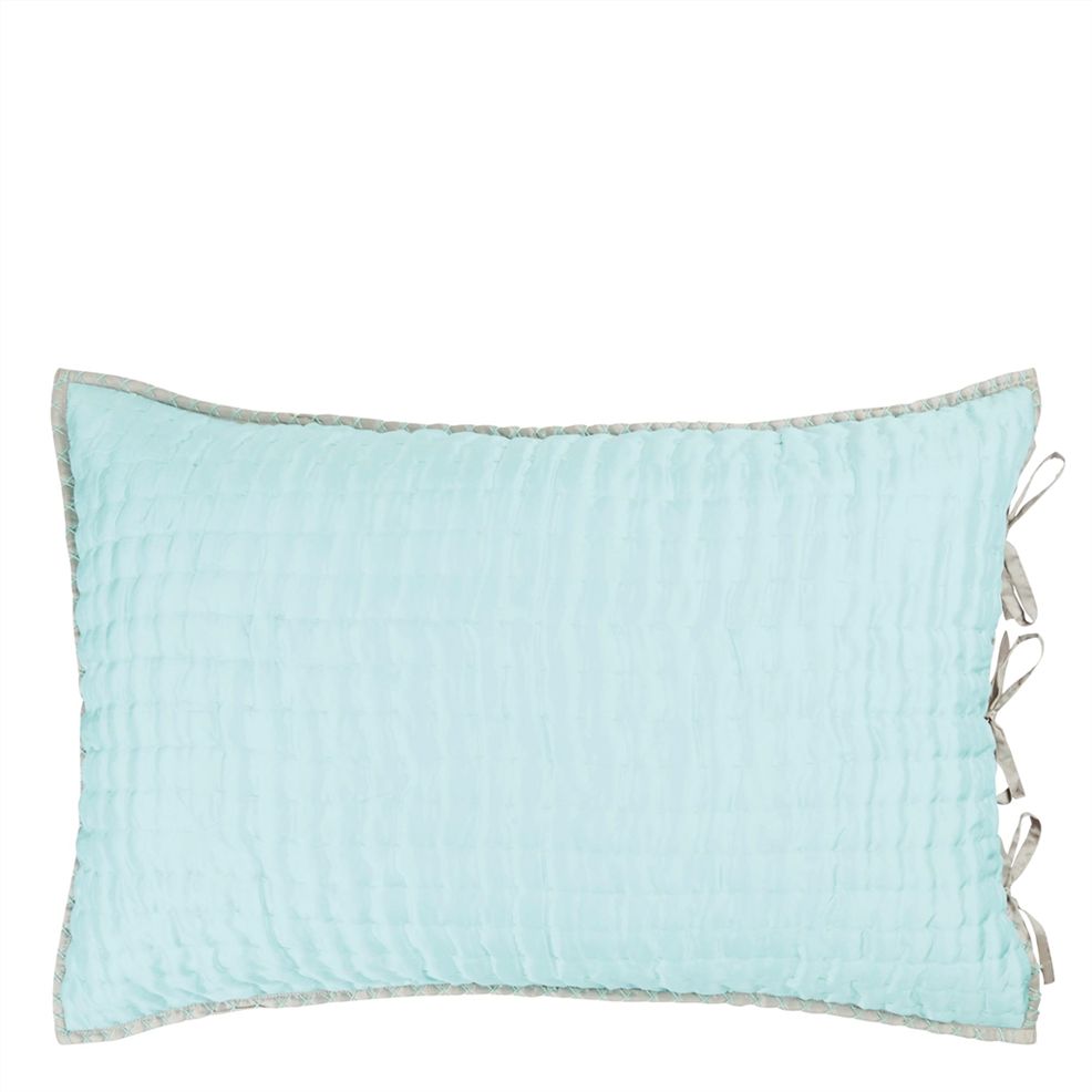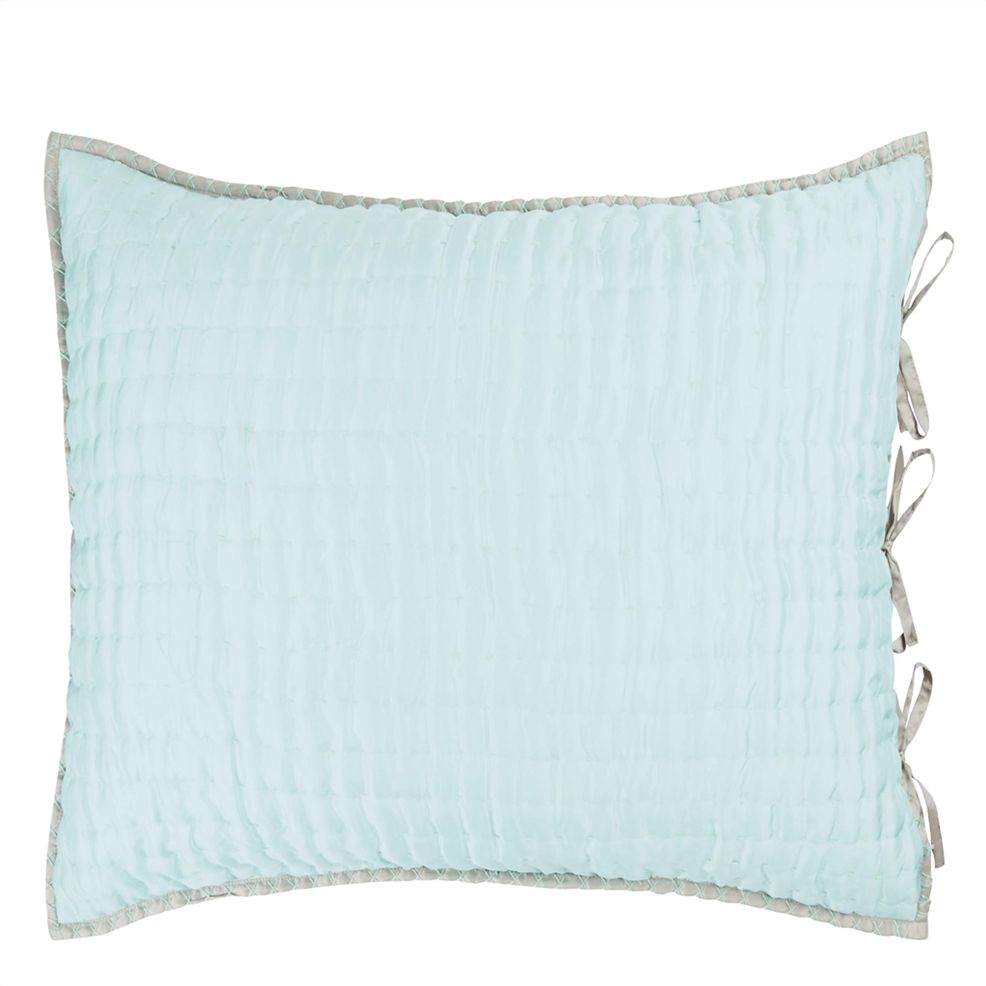 Designers Guild 's Chenevard is fun and exquisite. These luxuriously soft and lightweight quilts and shams are in Pebble with a reverse of Duck. Hand-quilted and finished with a contrast cross stitch detail makes for a sophisticated complement to any bedroom. 100% Silk