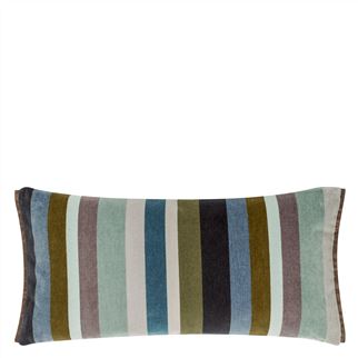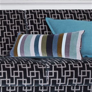 This contemporary velvet stripe decorative pillow from Designers Guild features distinctive