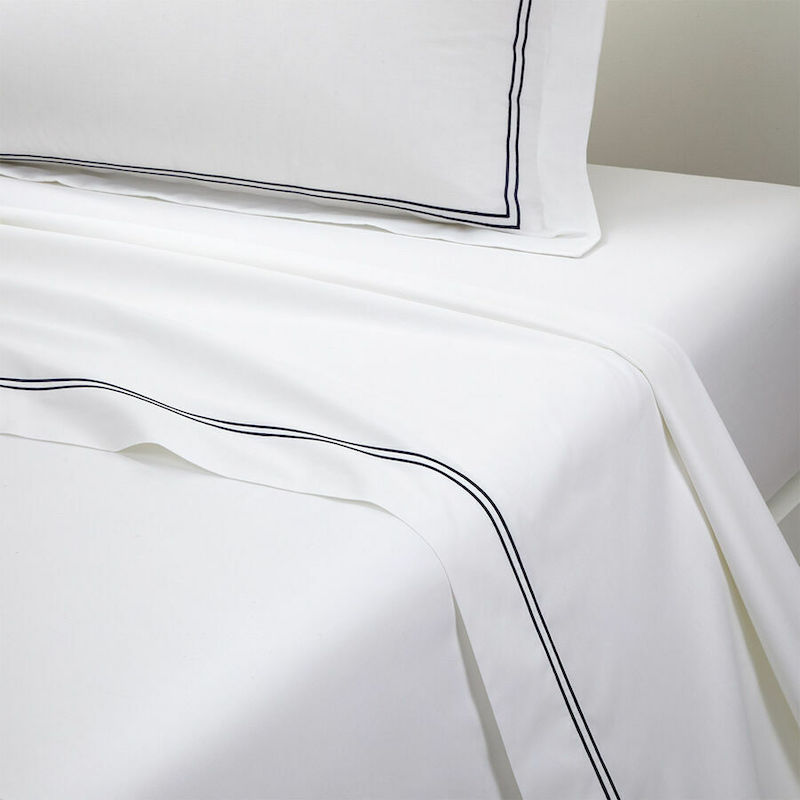 Flat sheet with double bourdon stitch finish.