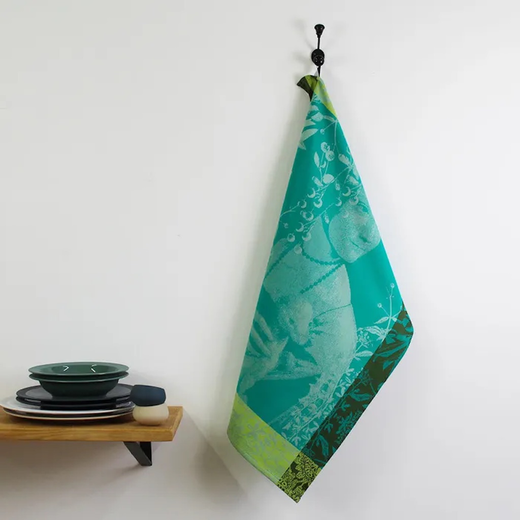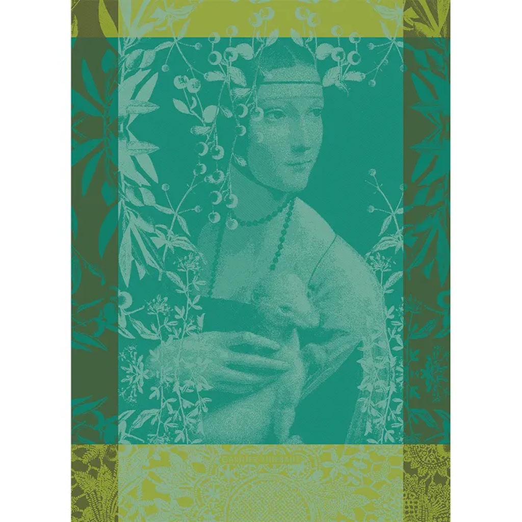 Garnier Thiebaut's La Dame A L'Hermine Canard is a true homage to The Lady with an Ermine is a portrait painting widely attributed to the Italian Renaissance artist Leonardo da Vinci. Add a hint of French style in your kitchen. Hook label. 100% cotton, printed. This premium quality of cotton with long fibers results in a stronger, softer and more durable fabric. Made in France.