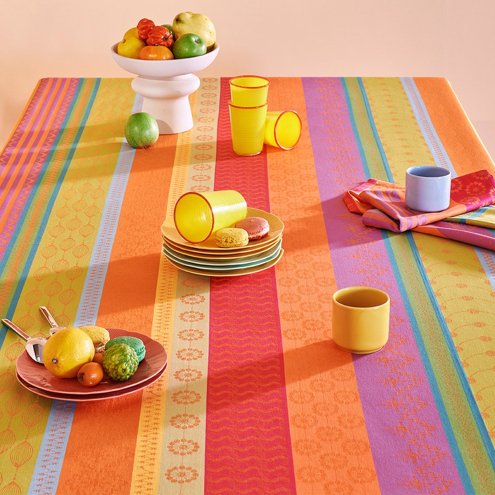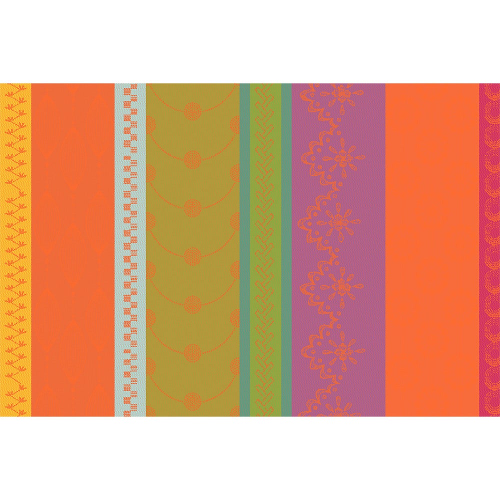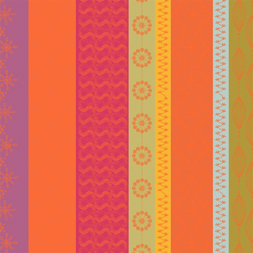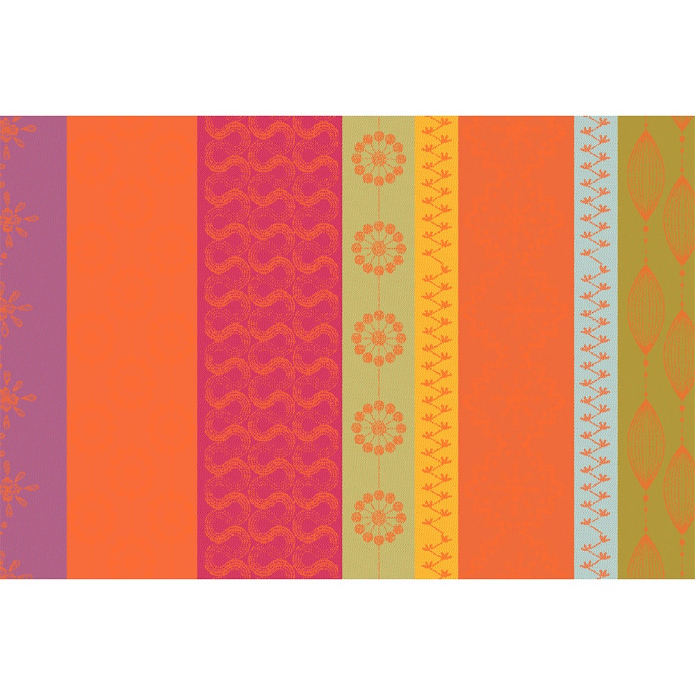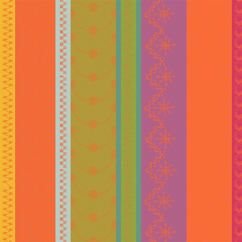 Garnier Thiebaut's Mille Broderies Samba is a party! In this collection you have bold, bright colors come alive in orange stripes that is sure to make a splash. This linen is designed to blend into every season of the year, from Spring to Winter.