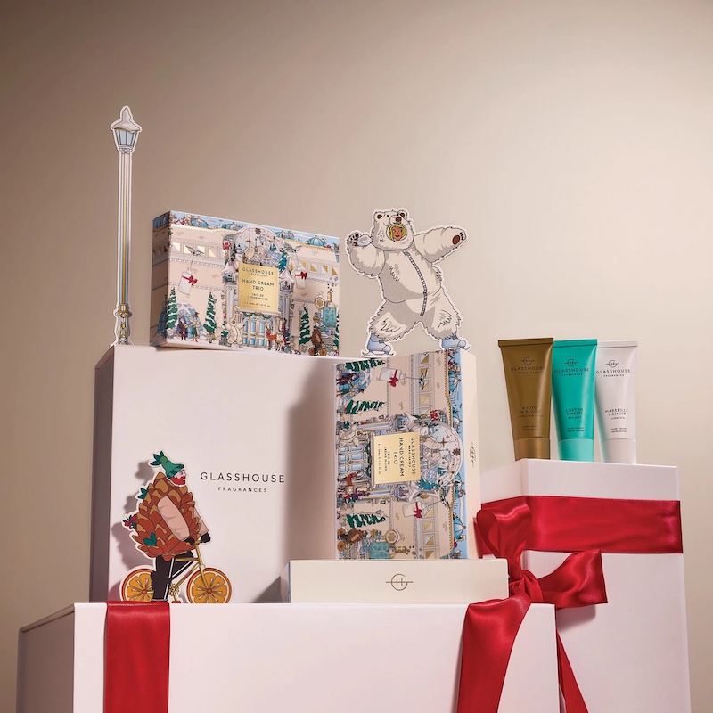 Contains 1 x Kyoto In Bloom 1 fl. oz. Hand Cream, 1 x Lost In Amalfi 1 fl. oz. Hand Cream, 1 x Marseille Memoir 1 fl. oz. Hand Cream all wrapped in Gift Box with designs by Aeoniumsky.