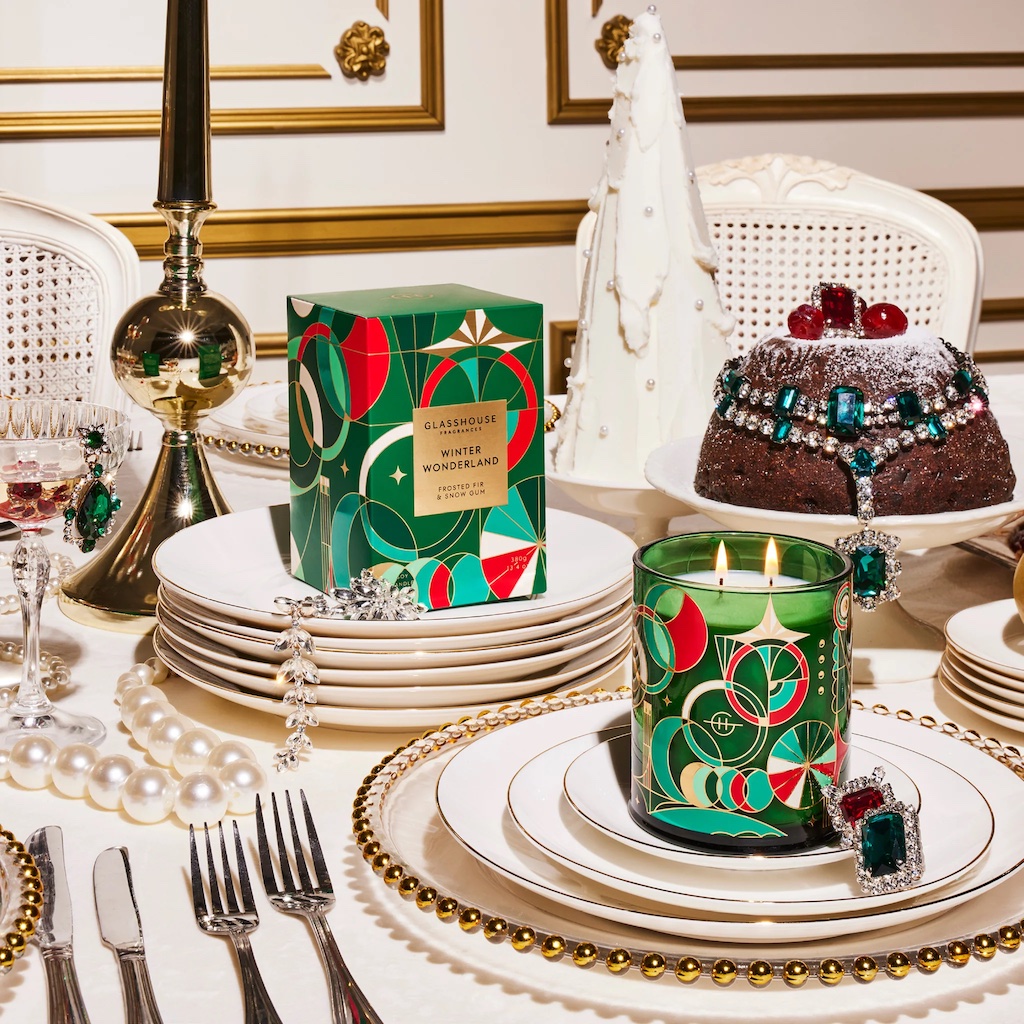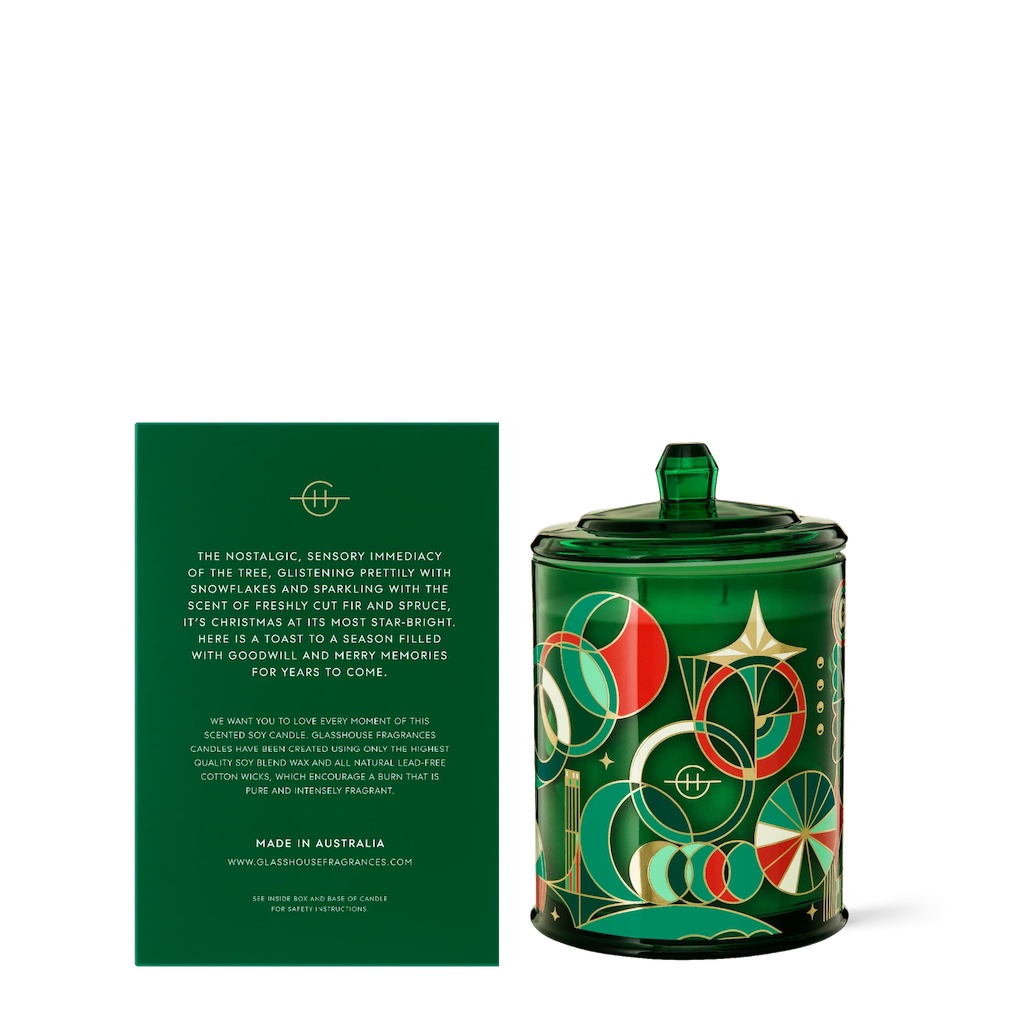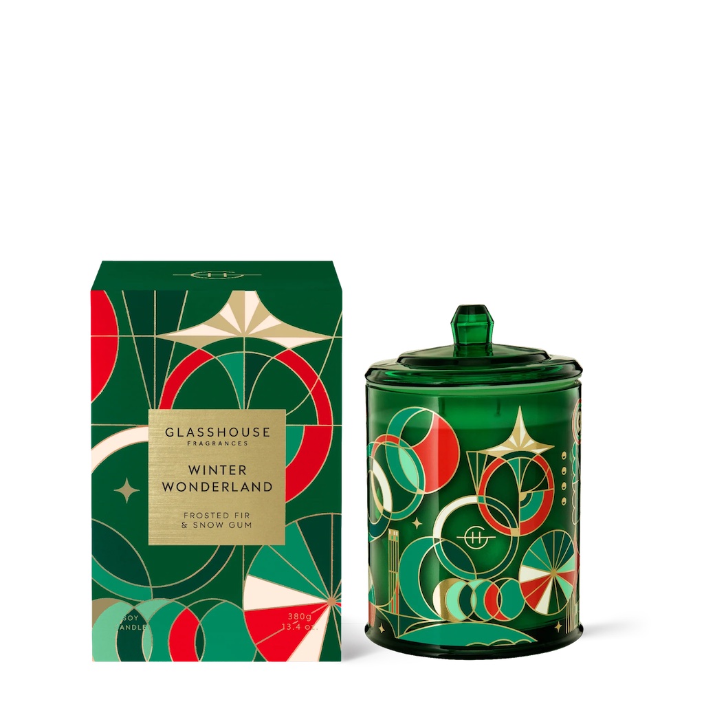 Glasshouse Winter Wonderland Candles come in a decorative vessel with illustrations by Eirian Chapman. Perfect way to toast the season! With the sparkling scent of freshly cut Fir and Spruce.