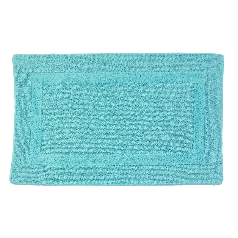The Habidecor Reversible rug in Turquoise 370 is a classic piece from their collection, versatile in pure cotton. Simply turning it around gives a different version of this reversible bath rug. The beautiful color palette for everyones’ taste and mood. Available in 60 designer shades to coordinate with the complete Abyss towel collection. Pre-shrunk and piece-dyed after sewing to ensure the rug, label, and trim are a perfect color match. Luxurious 3/4" thick pile with inset frame border reversing to a pleasing twist pattern. A hefty 2,200 GSM weight makes Reversible Rugs luxurious and durable. These rugs feature the classic opulence of an inset border frame (similar to the Must Rug) on one side and reverse to a textured twist weave. 100% Giza Egyptian Cotton Long Staple. Made in Portugal.