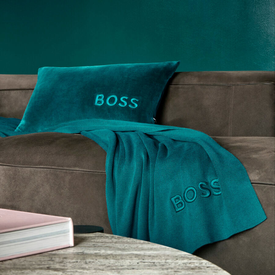 Hugo Boss Bold Logo Throw is an embroidered knitted throw. The iconic Boss logo makes a stylish impression on the throw.